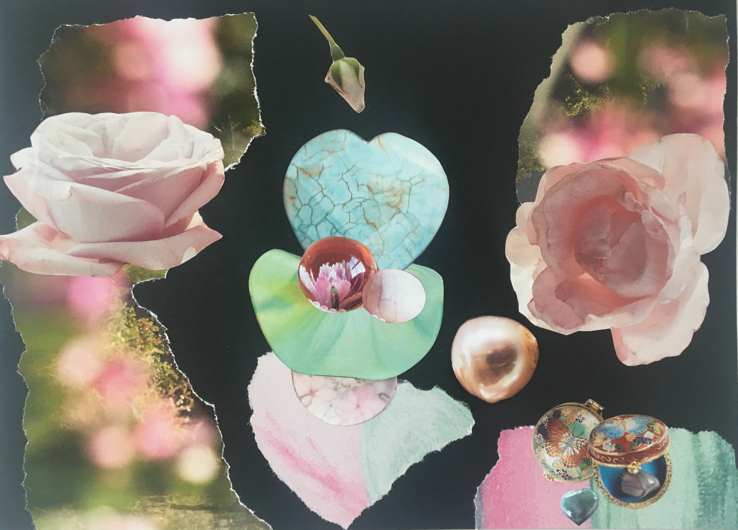 Surreeel Blauw Spiritueel Groen Kleurig Papier Rozen Flow Verhalend Collage Papierkunst Spiegel Positief Intuïtief Artiest Kunstenaar Verhaal Bewegend Creatief Lijm Beeldverhaal Boodschap Schaar Papierkunstenaar Vertellen