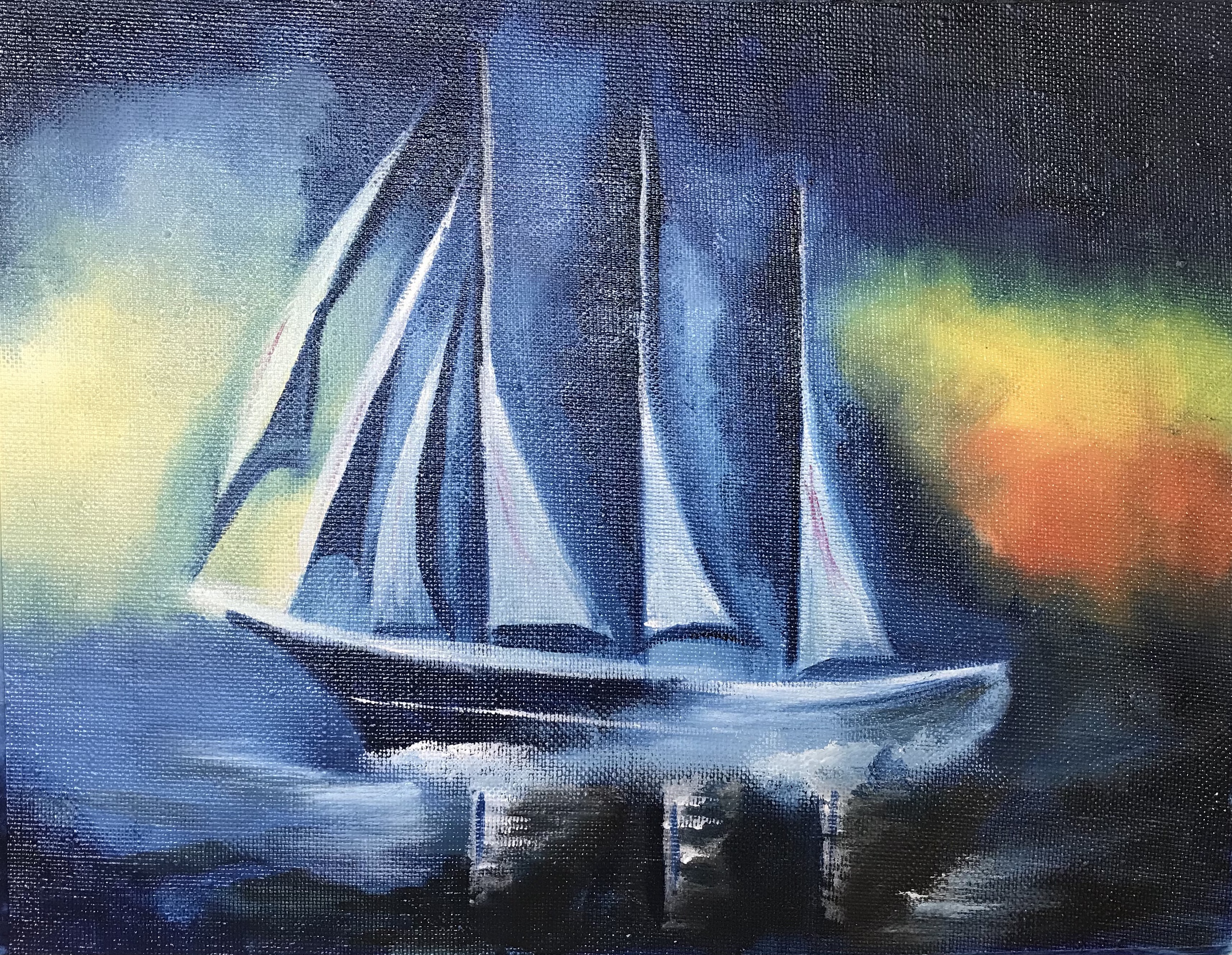 Op het schilderij heb ik de klassieke driemaater de Eendracht geschilderd. Het moest een eyecatcher worden.