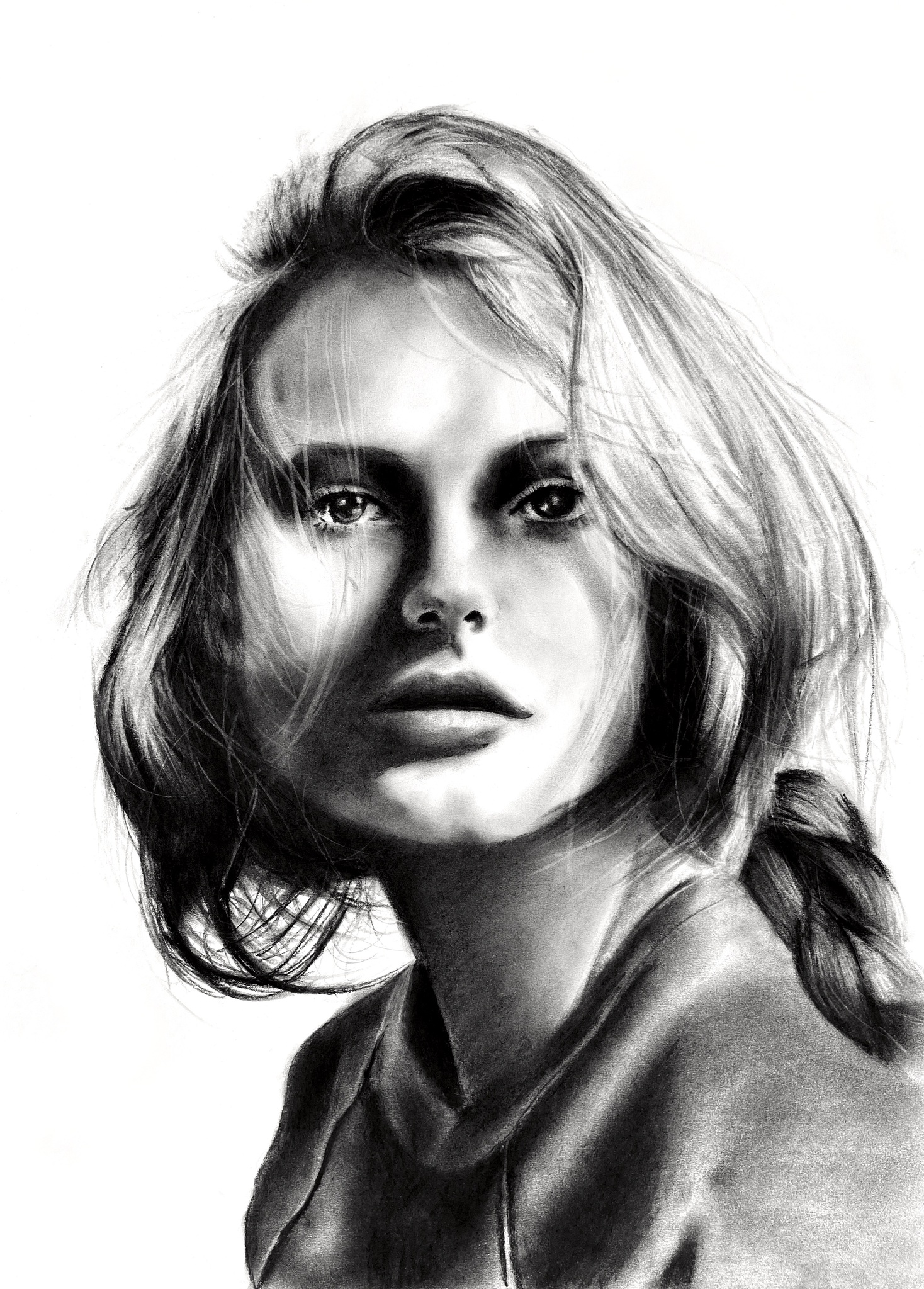Wit Meisje Zwart Vrouw Portret Tekening Realistisch Houtskool