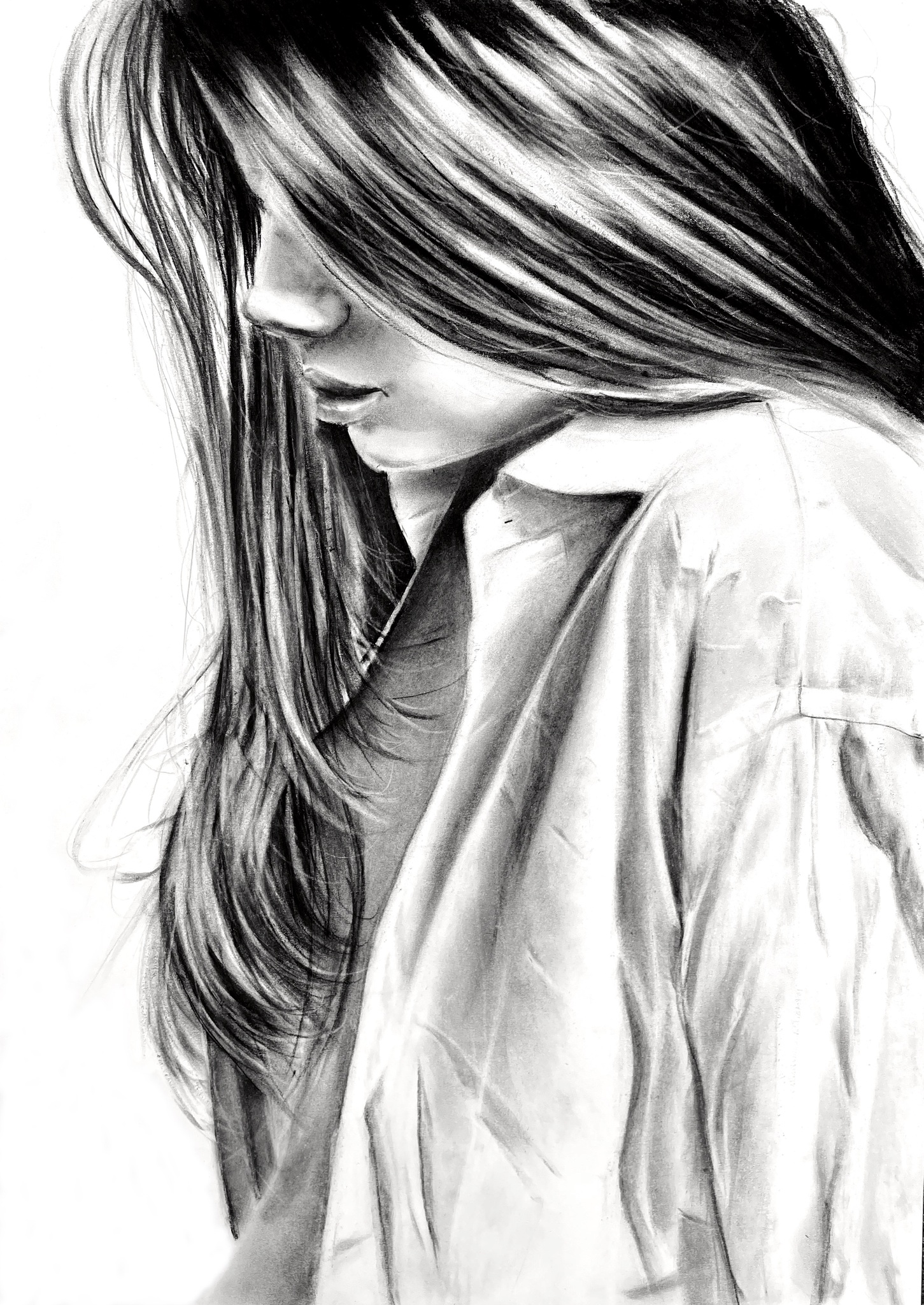 Wit Meisje Zwart Vrouw Portret Tekening Realistisch Houtskool