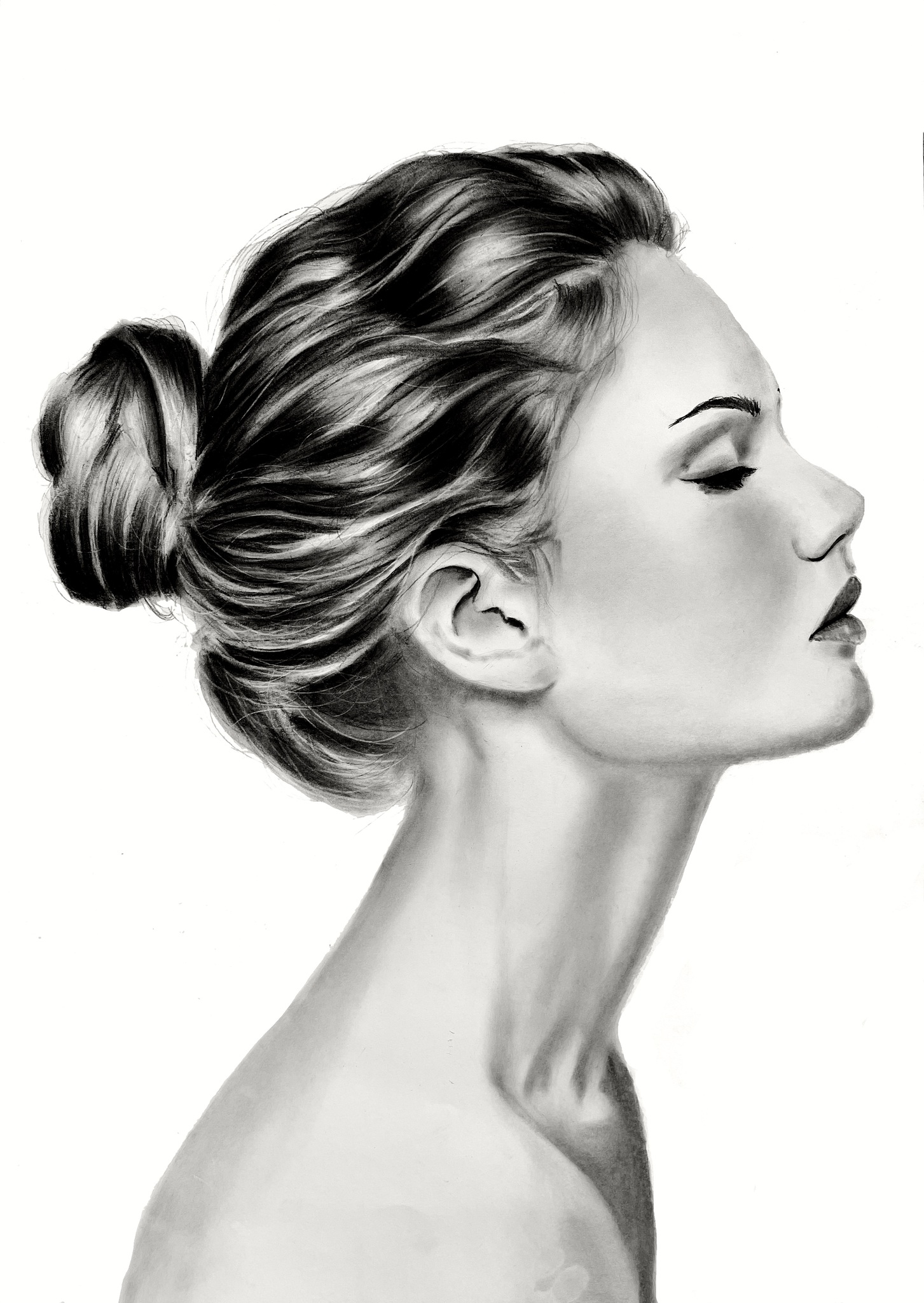 Vrouw Model Tekening Realistisch Houtskool Haar
