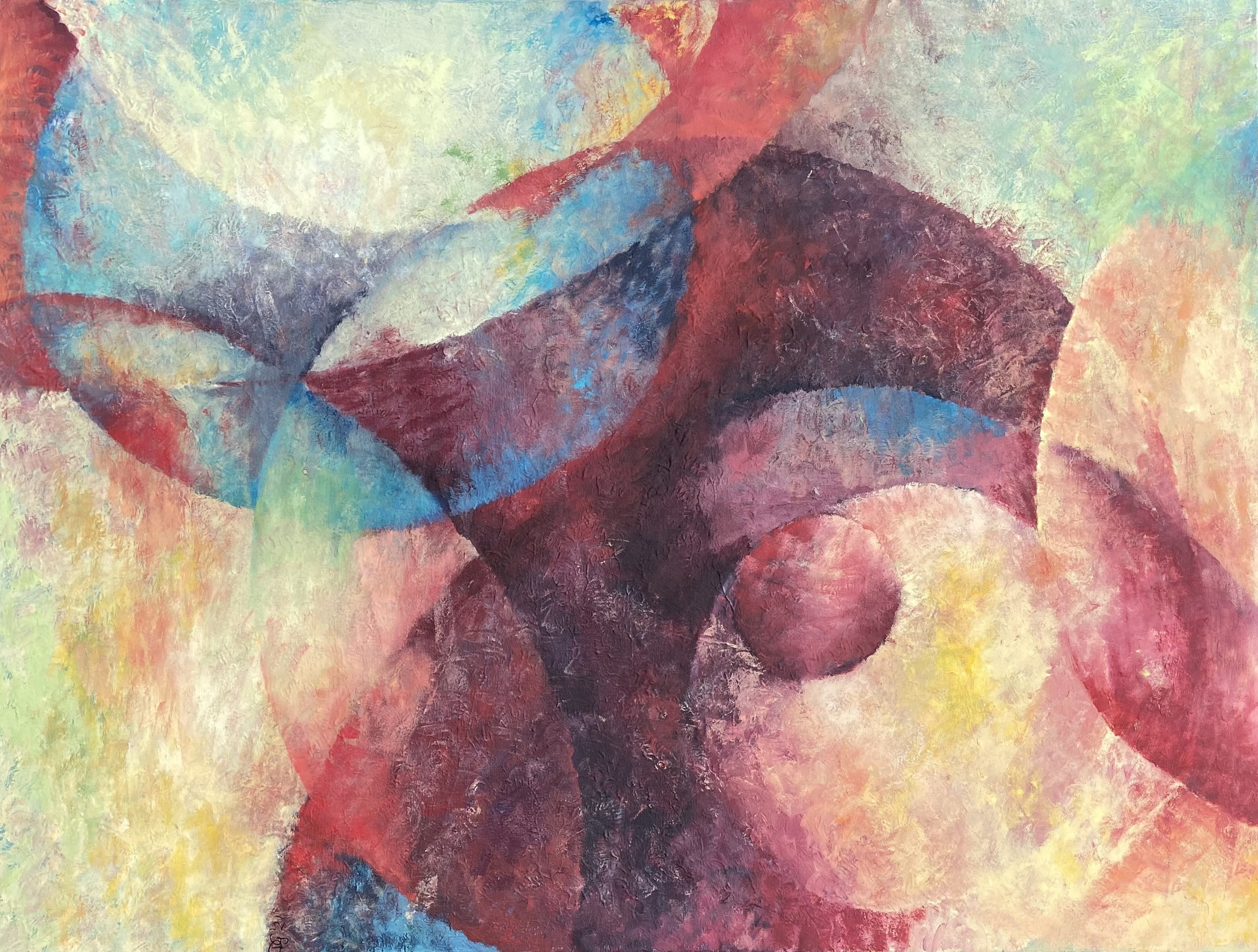 Heerlijk om een gevoel met een eigen draai aan de werkelijkheid op een abstraherende wijze op het doek te zetten.