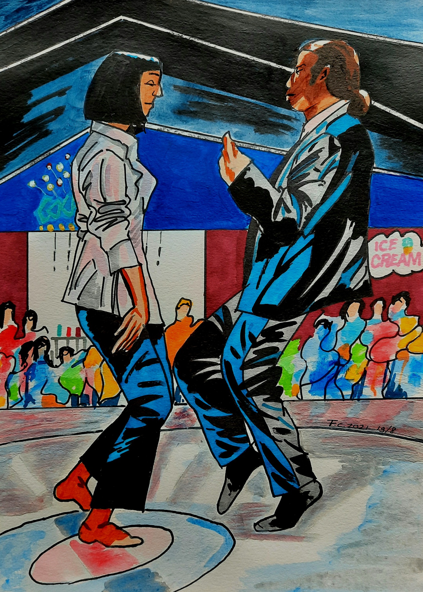 Mixed Media Dansen Fiction Popart Film John Pulp Uma Swingen Travolta Tarantino Thurman