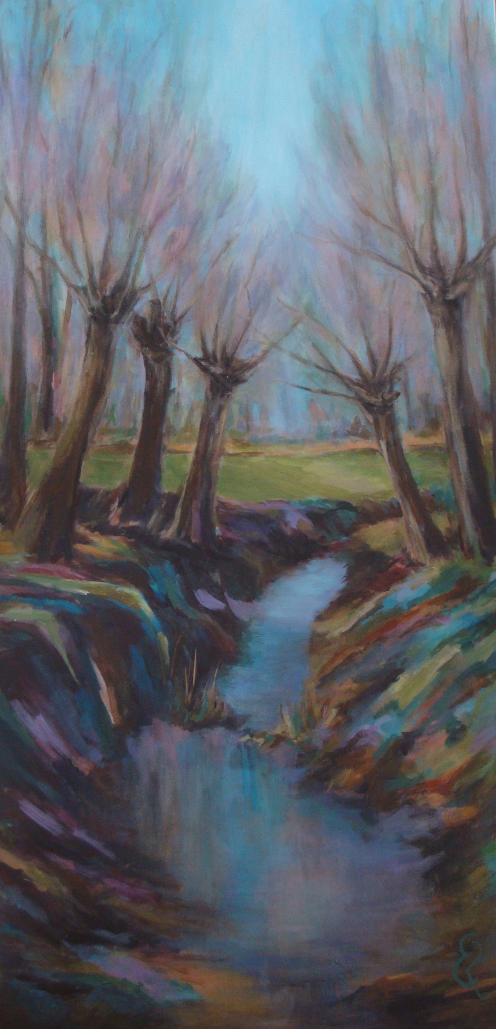 Landschap Blauw Bomen Abstraherend Sloot Wilg