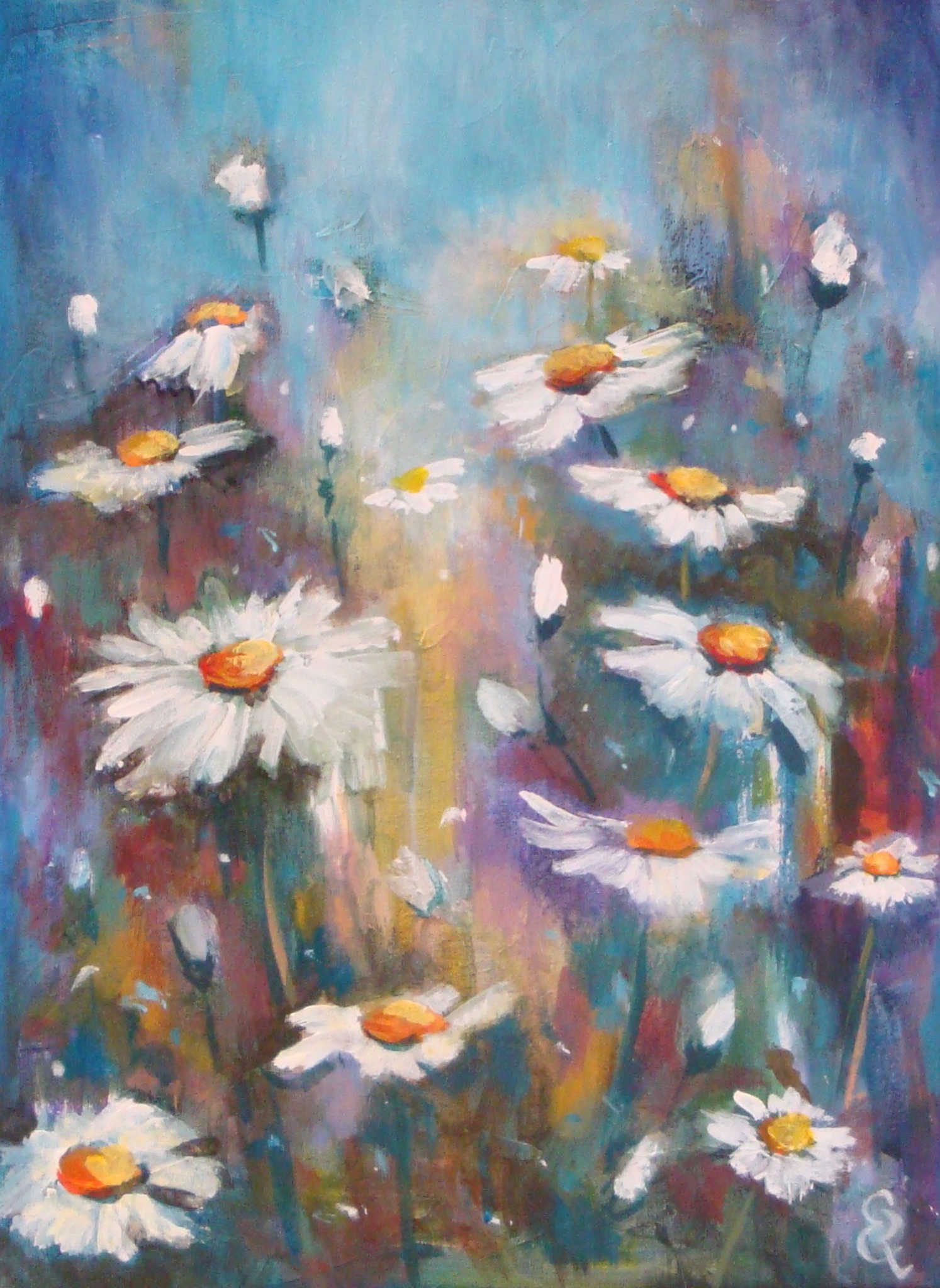 Wit Geel Blauw Expressief Bloemen Margrieten