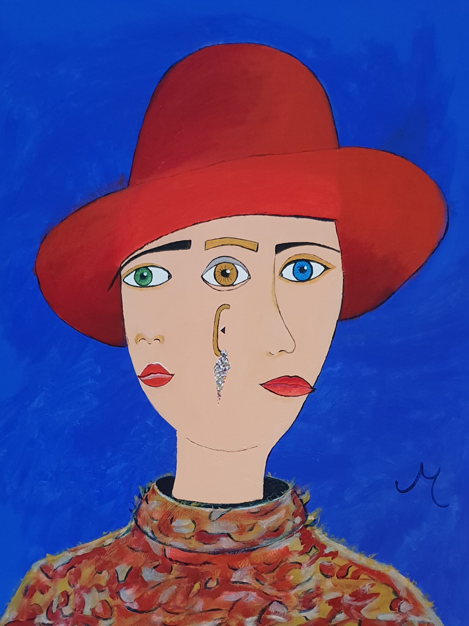 Rode Vrouw Portret Surrealistisch Hoed
