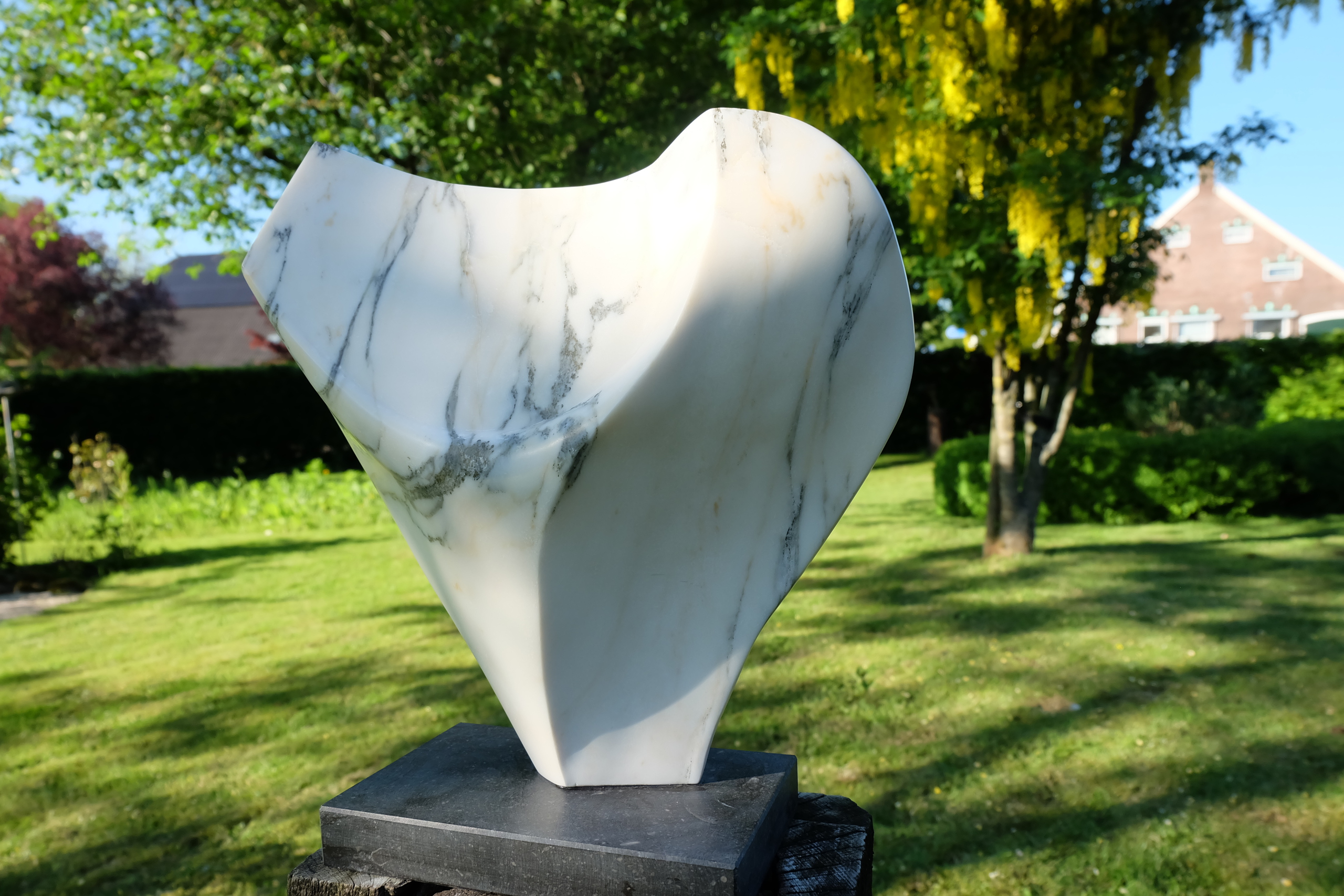 Uit een groot stuk carrara marmer werd dit hart geboren, vrij gevormd naar de gevoelens van dat moment.