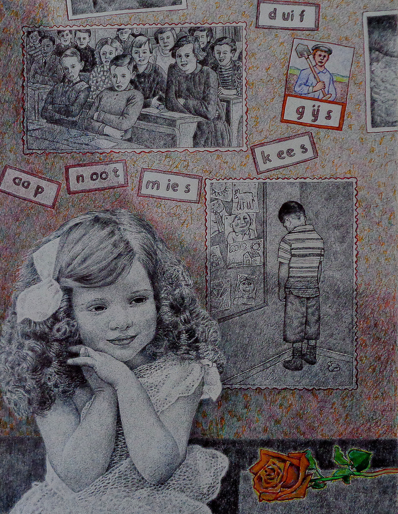 Vrij werk in ballpoint stift en kleurpotlood