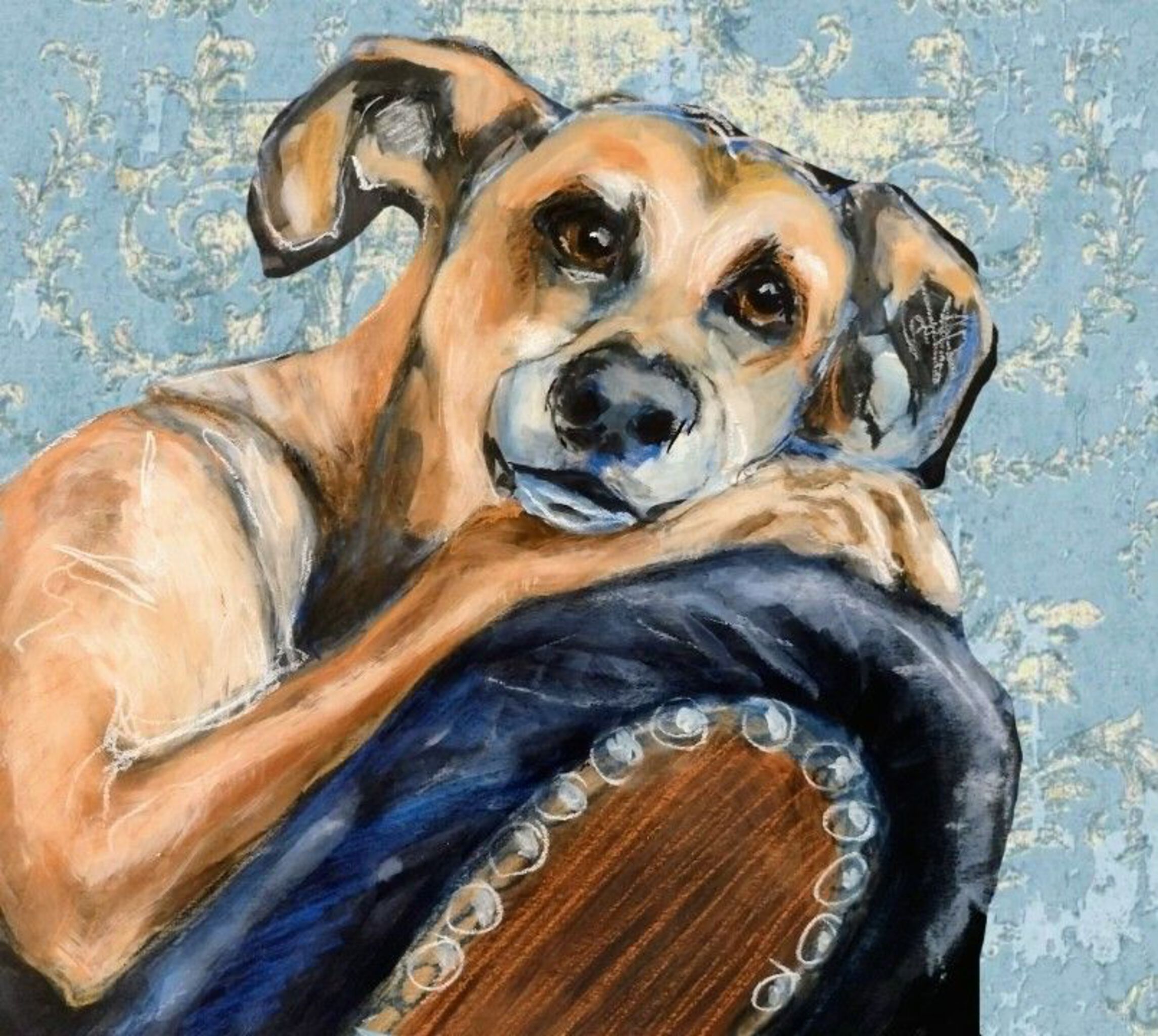 Hond Dier Blauw Stoel Gemengde Techniek Grappig Mixed Media