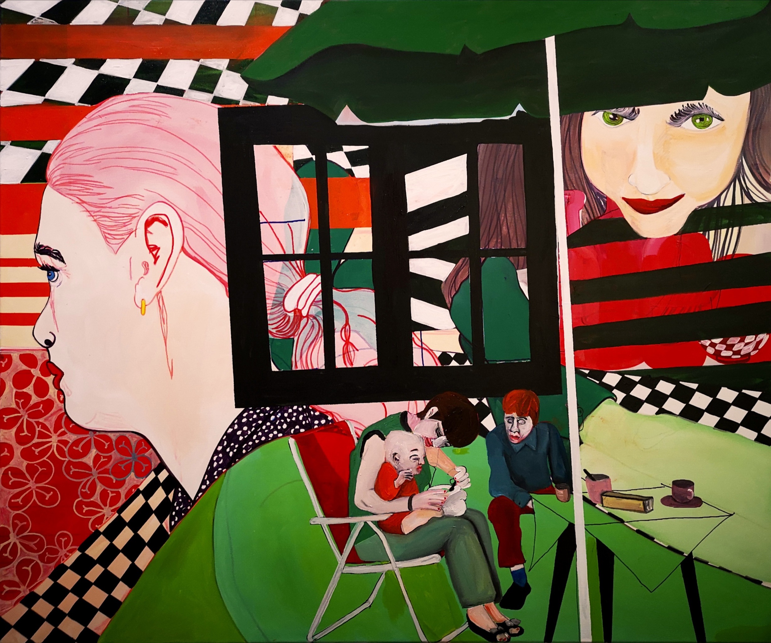 Schilderij Mensen Familie Ramen