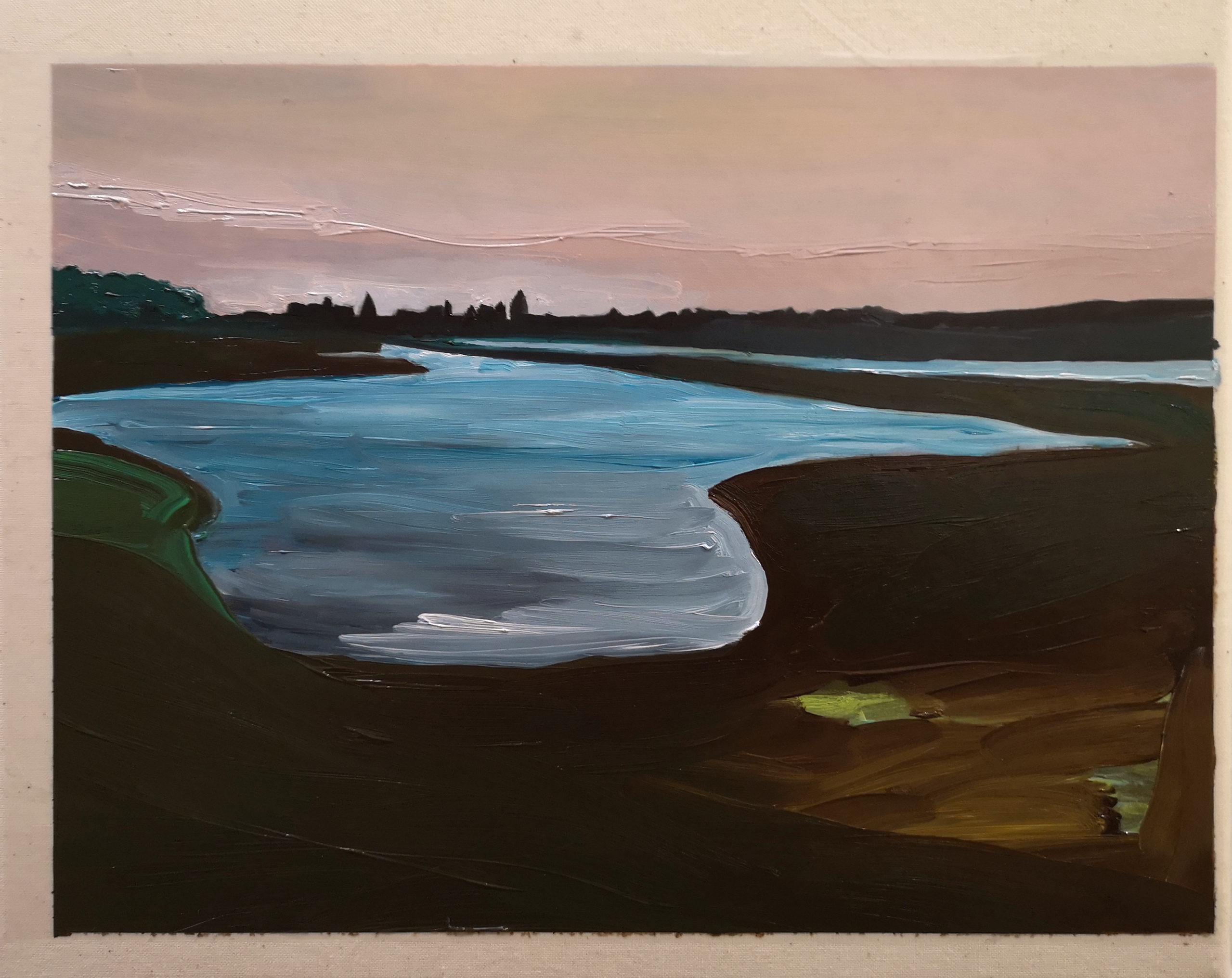 Landschap Olieverfschilderij Rivier Avond