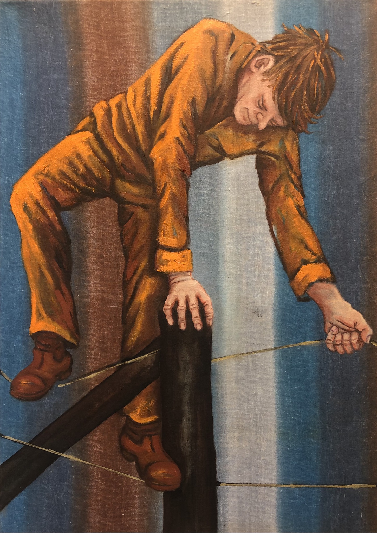 In mijn werk probeer ik het alledaagse, de mens met al zijn gedoe, te vangen in een moment. Daarbij maak ik bewust gebruik van de ondergrond waarop ik schilder en ben ik op zoek naar de dialoog tussen waar het over gaat en waar het op geschilderd is. Hiervoor gebruik ik kleur, compositie en experimenteer ik met het materiaal van de ondergrond.
