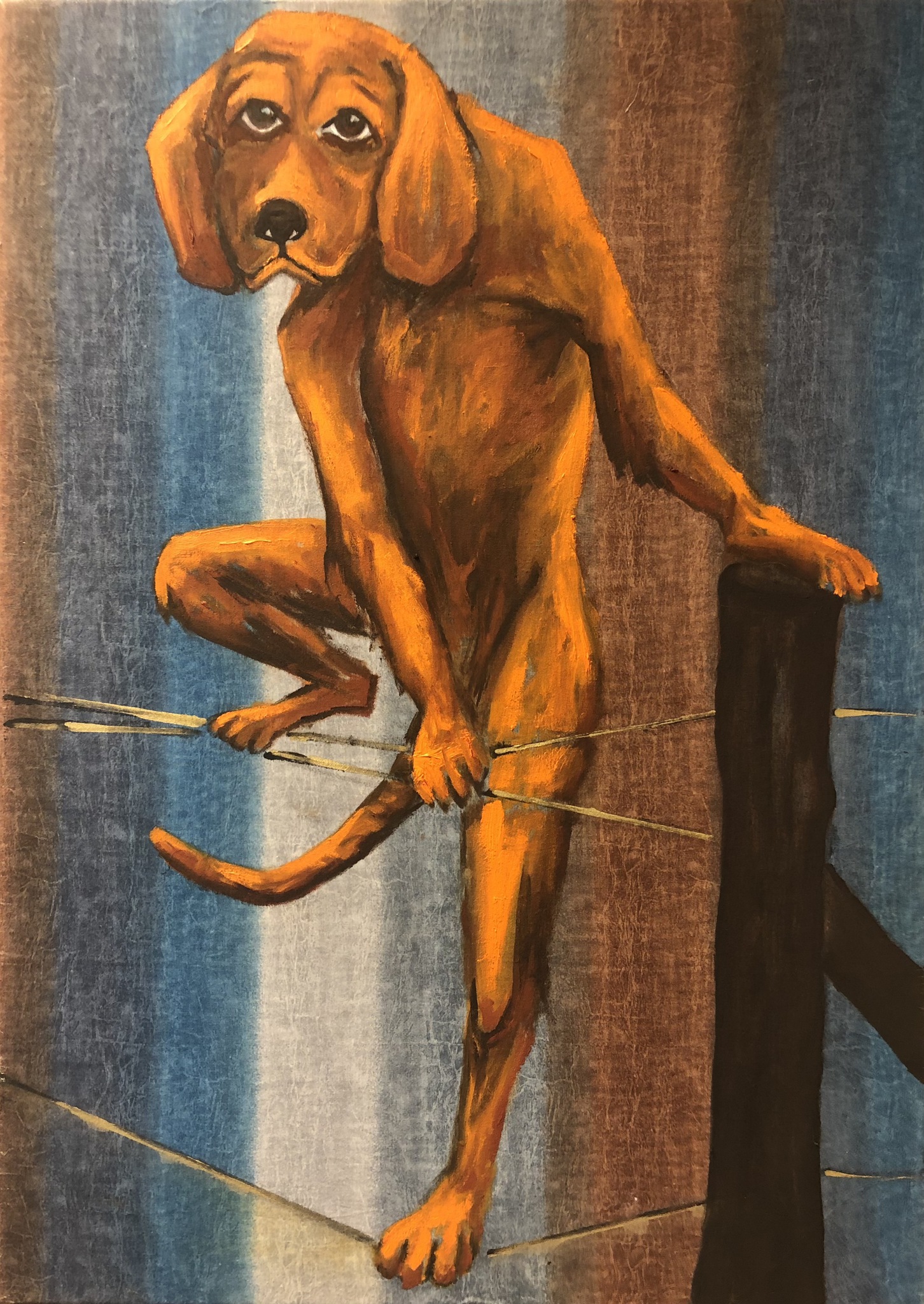 Dog climbing over the fence