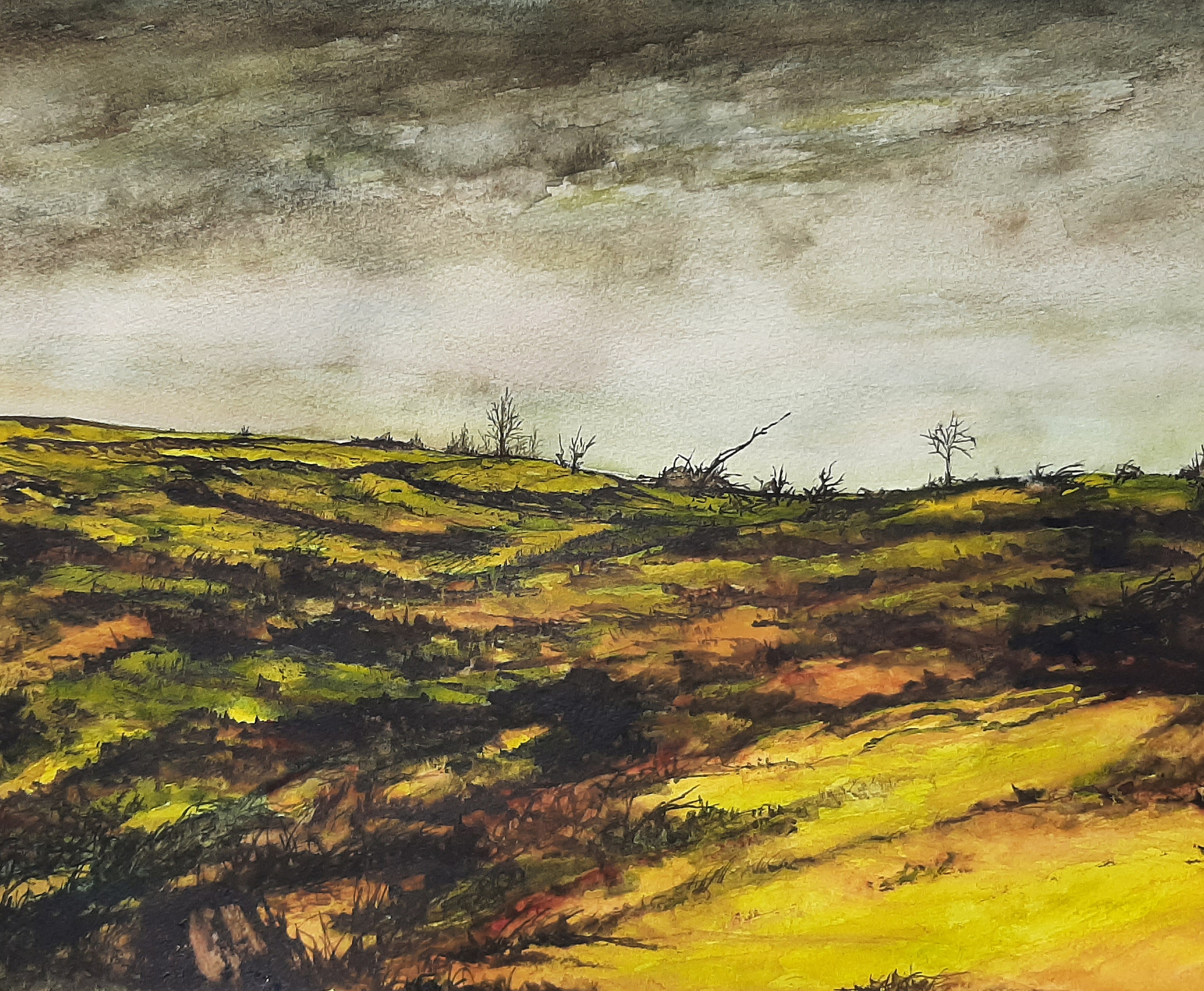 De Schadijkse Heide is een uitgestrekt natuurgebied in Noord Limburg, in de buurt van het kerkdorp Meterik. Heide, zandgonden en bossen, een ideaal gebied om er te wandelen. En inspiratie op te doen om te verweken in een aquarel. De vermelde prijs is exclusief lijst, passe-partout en/of verzendkosten.