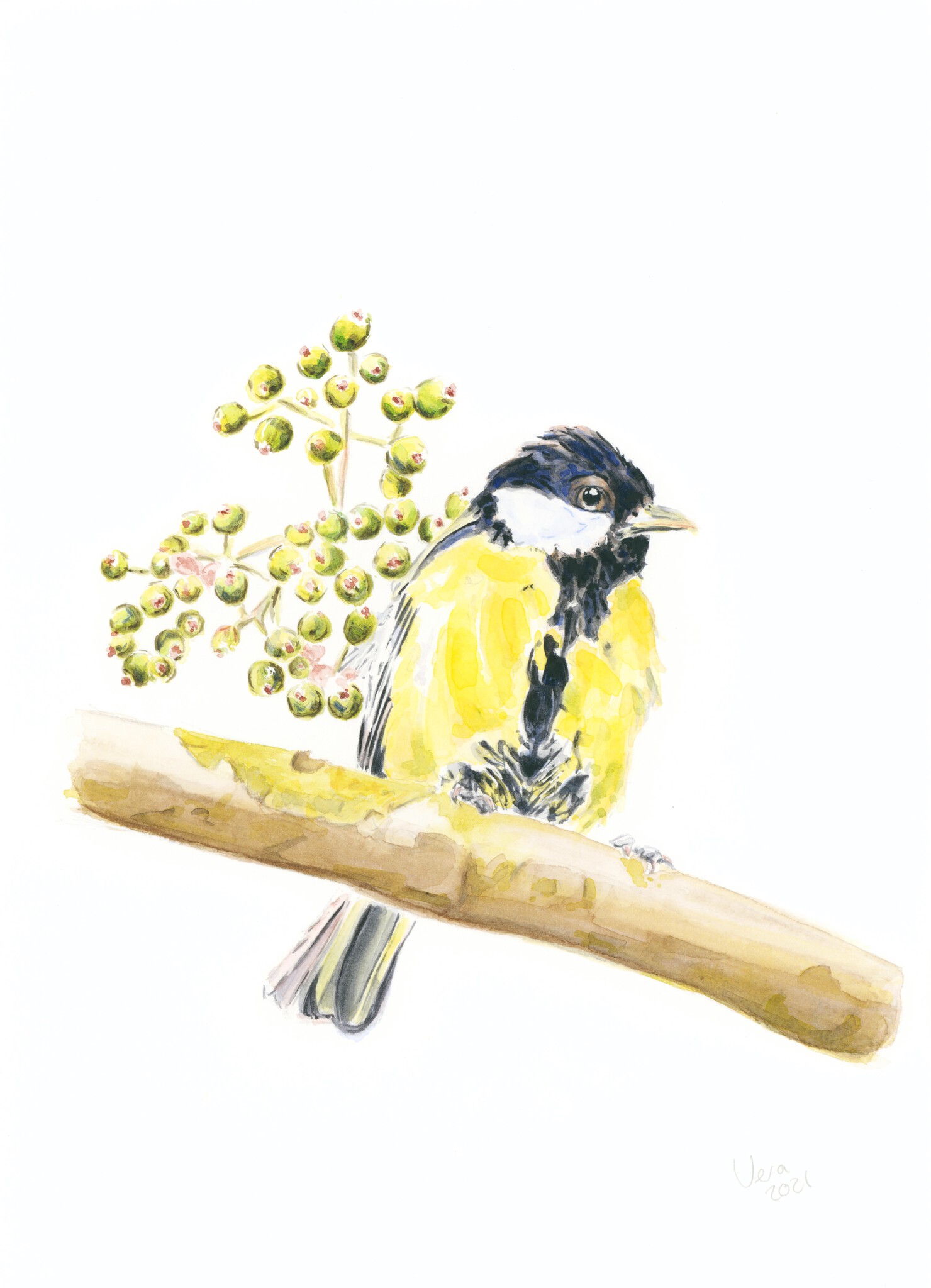Koolmeesje Tuinvogel Bosvogel Vogel Dier Aquarel