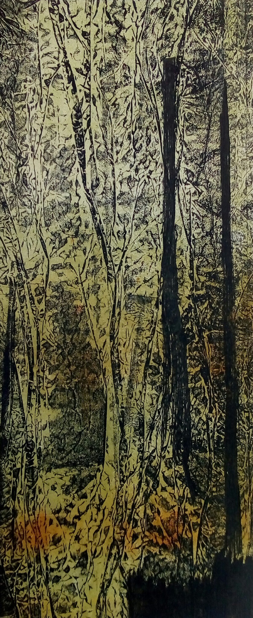 Gemaakt met verschillende druktechnieken. Kaderformaat is 50x30 cm.