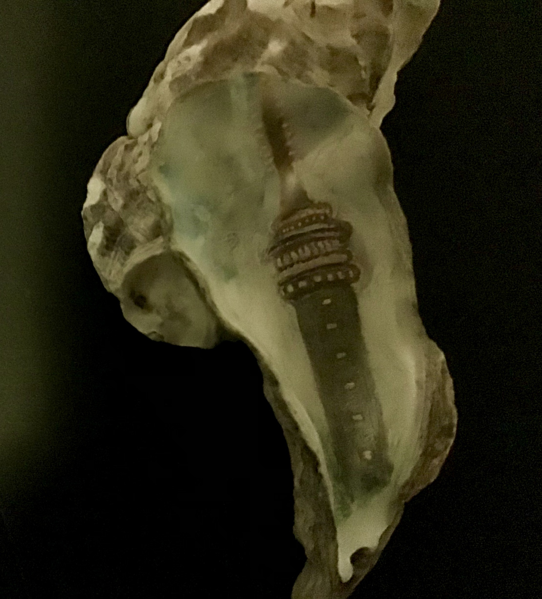 Geschilderd op oesterschelp.