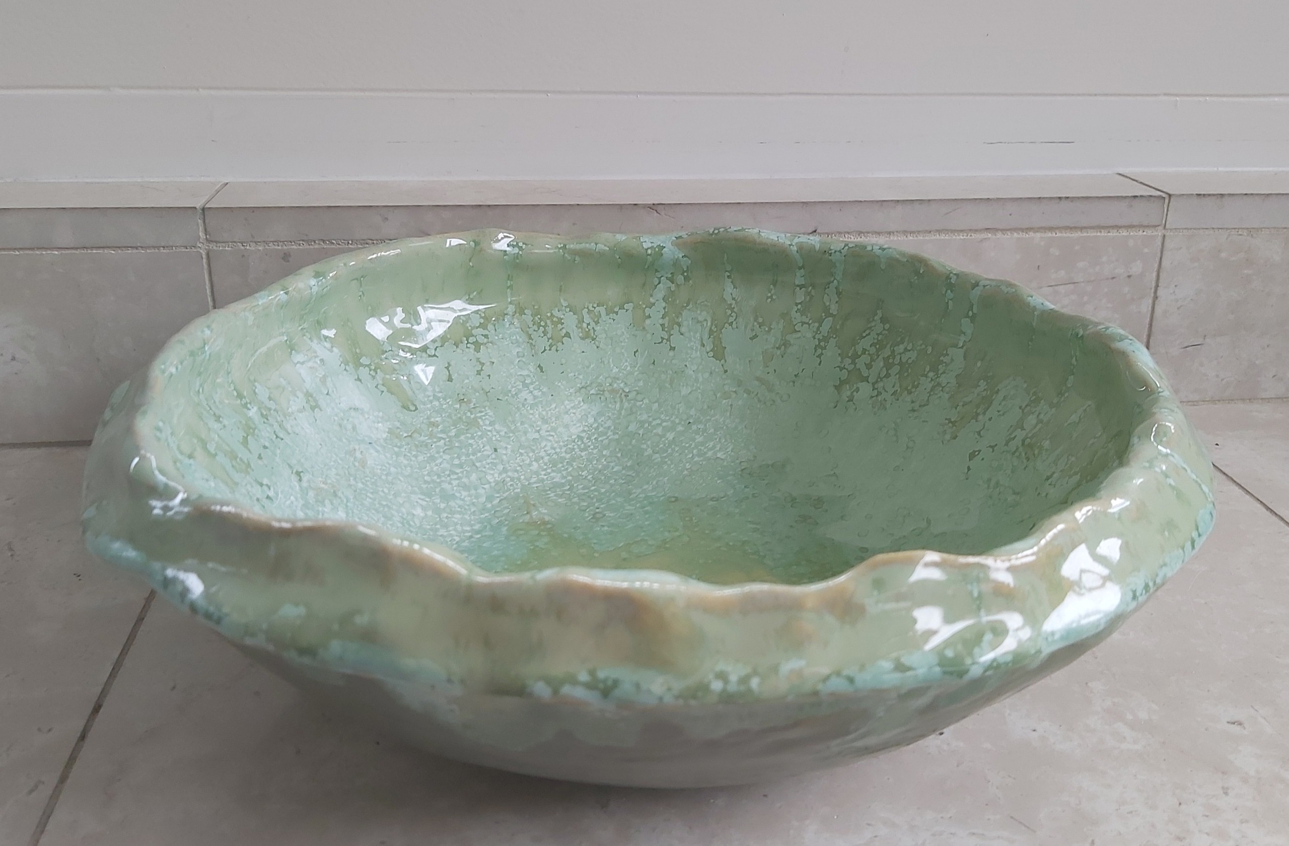Blauw Groen Schaal Handgemaakt Natuur Buiten Binnen Atelier Keramiek Decoratie