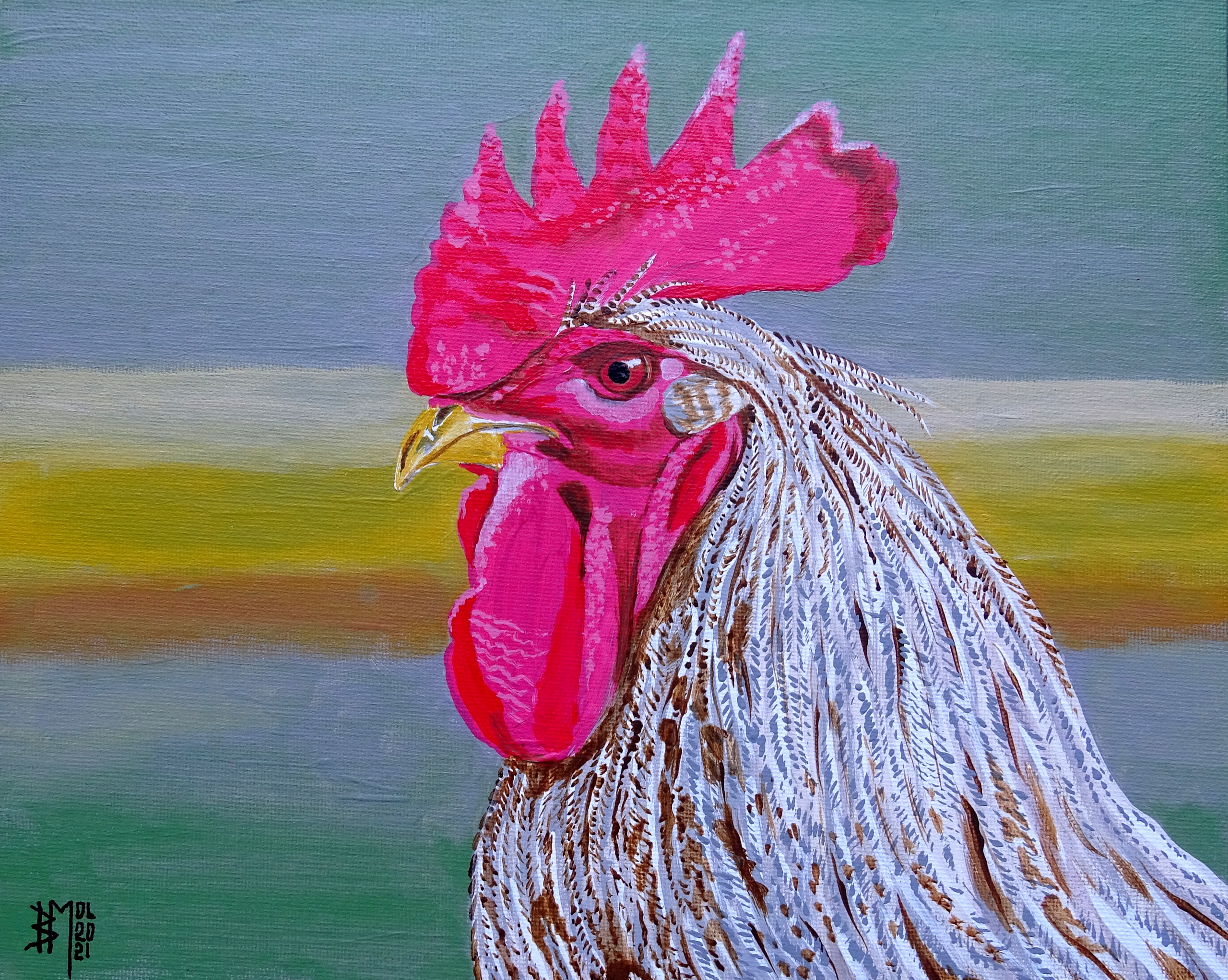 Vogel Kleurrijk Expressive Bird Haan Rooster Animals Rotterdam Pets Nature Colourful Cock Acrylics Pluimvee Handpainted Dutchartist Bastiaanmol