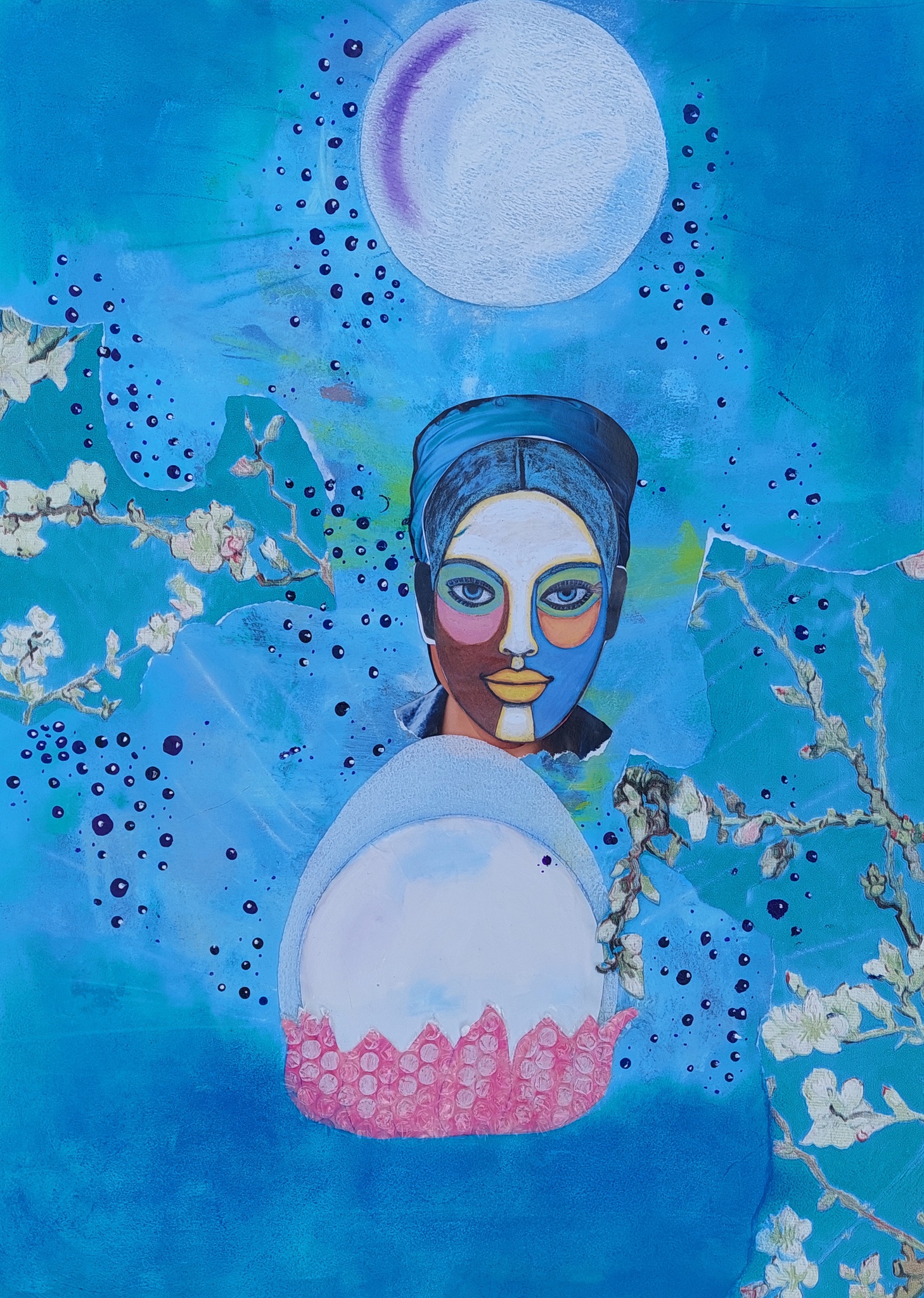 Sinds enkele jaren schilder ik vanuit mijn hart, intuitief ontstaan soms heel bijzondere elementen in mijn werk. Aan mij om dat wat verschijnt de aandacht te geven en het geheel te verbinden.