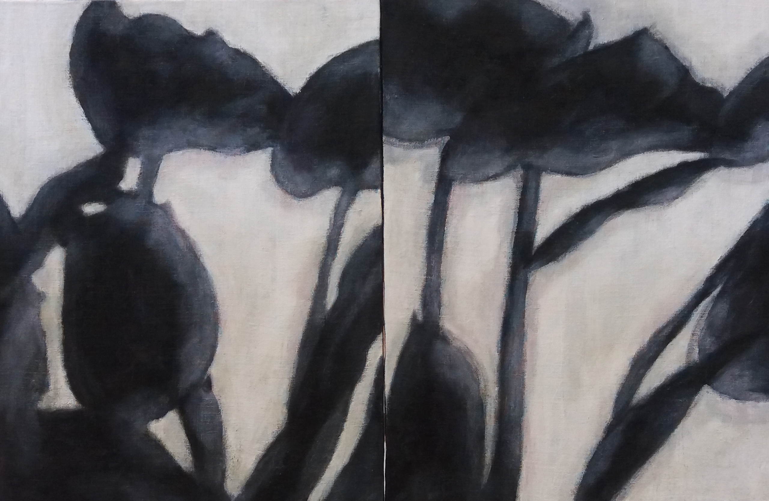 Tulpen Zwart Wit Tweeluik Schaduw Paneel