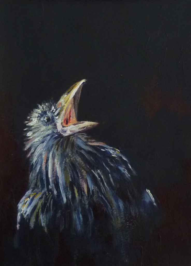 jonge raaf schreeuwt om voedsel
