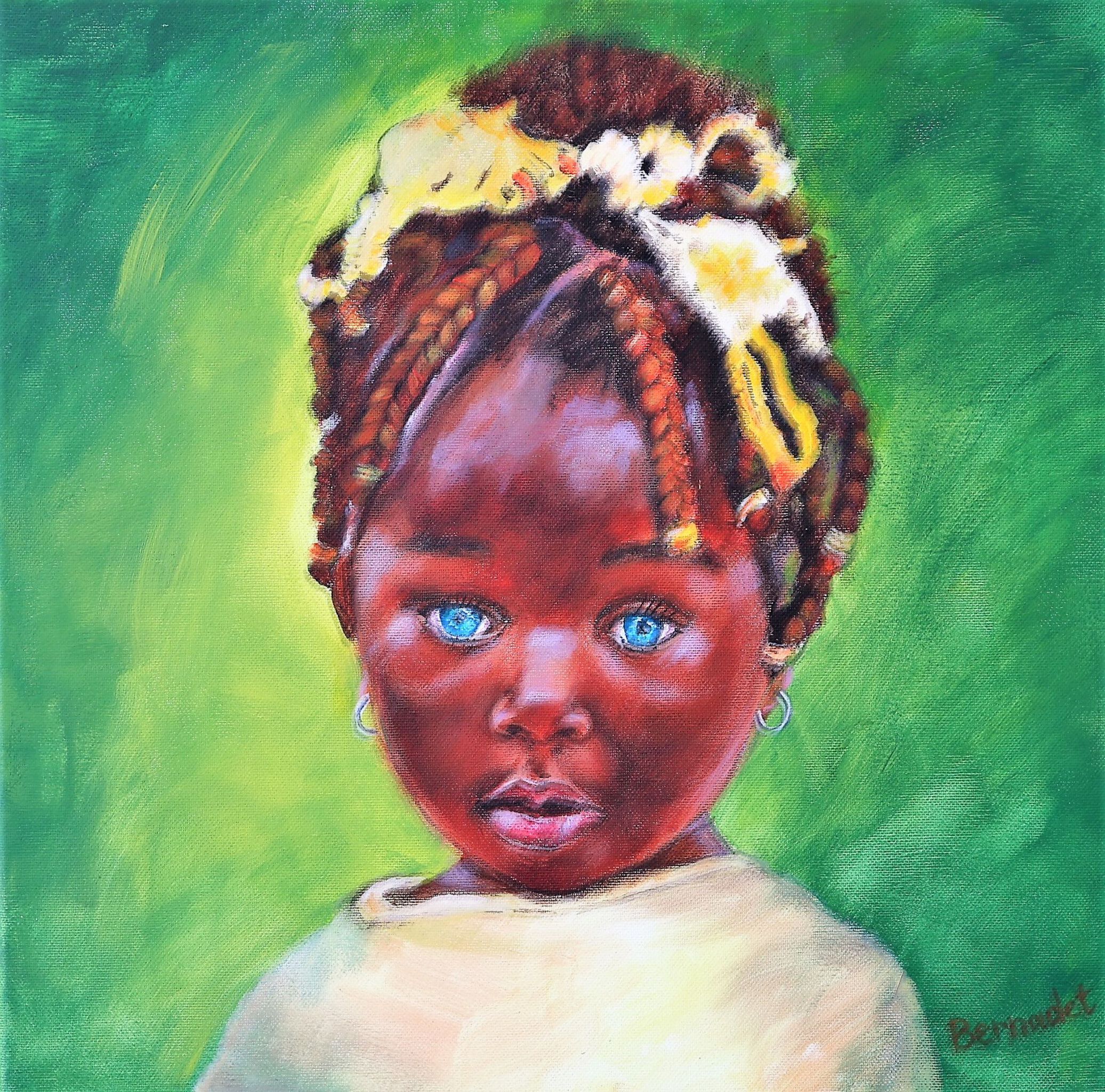 Meisje Geel Groen Kind Kleurrijk Ogen Vierkant Vrouwelijk Kinderportret Exotisch Suriname Mondiaal Shanti Uitheems