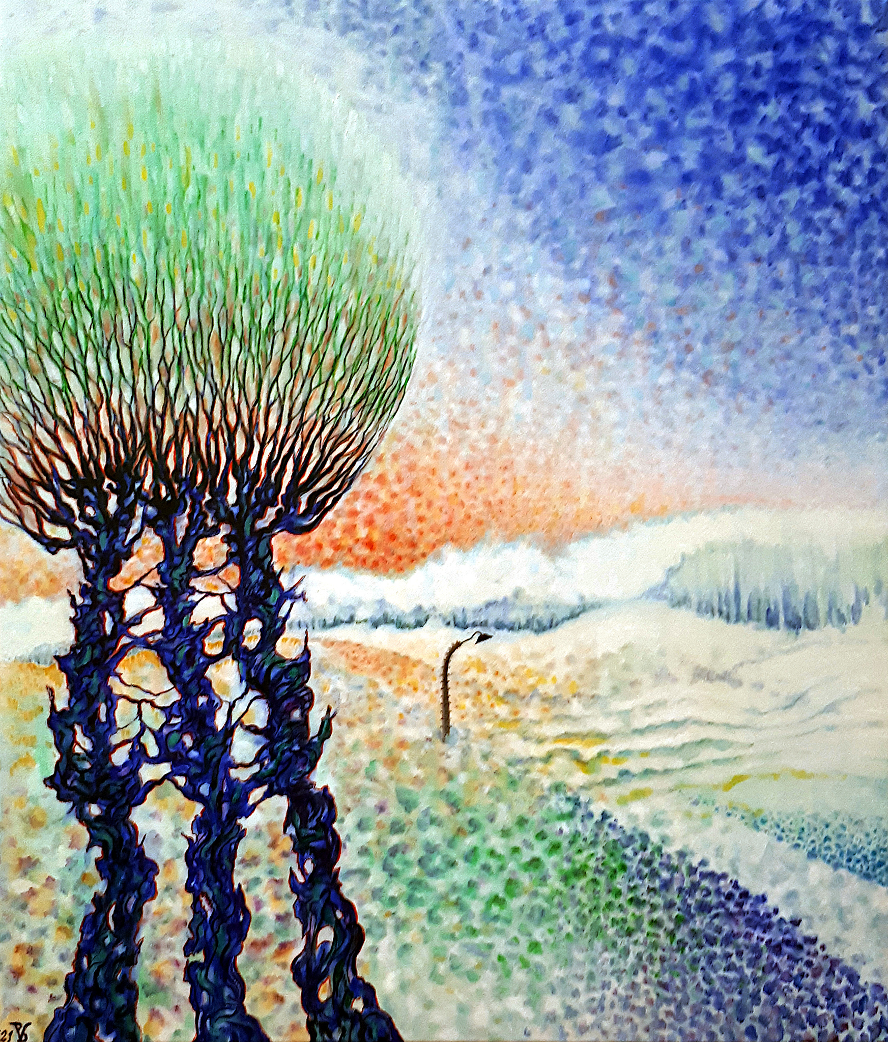 Bij wijze van spreken, doen, denken en ervaren, schilder ik (olieverf op doek en paneel) mijn spinsels. Mijn schilderstukjes zijn mijn buksjek, die ik gaandeweg verzameld heb. Zo is het ongeveer 50 jaar geleden (autodidact, 1947), ook begonnen: met een dood winterkoninkje, nog warm toen ik het vond. Het deed me beseffen dat er meer is dan een lichaam. En.. DAT gevoel is altijd gebleven..! Mijn werkjes verkoop ik (.. dus) niet graag... en exposeren doe ik zelden, ...maar alle dingen veranderen in de loop van de tijd... --- --- ---