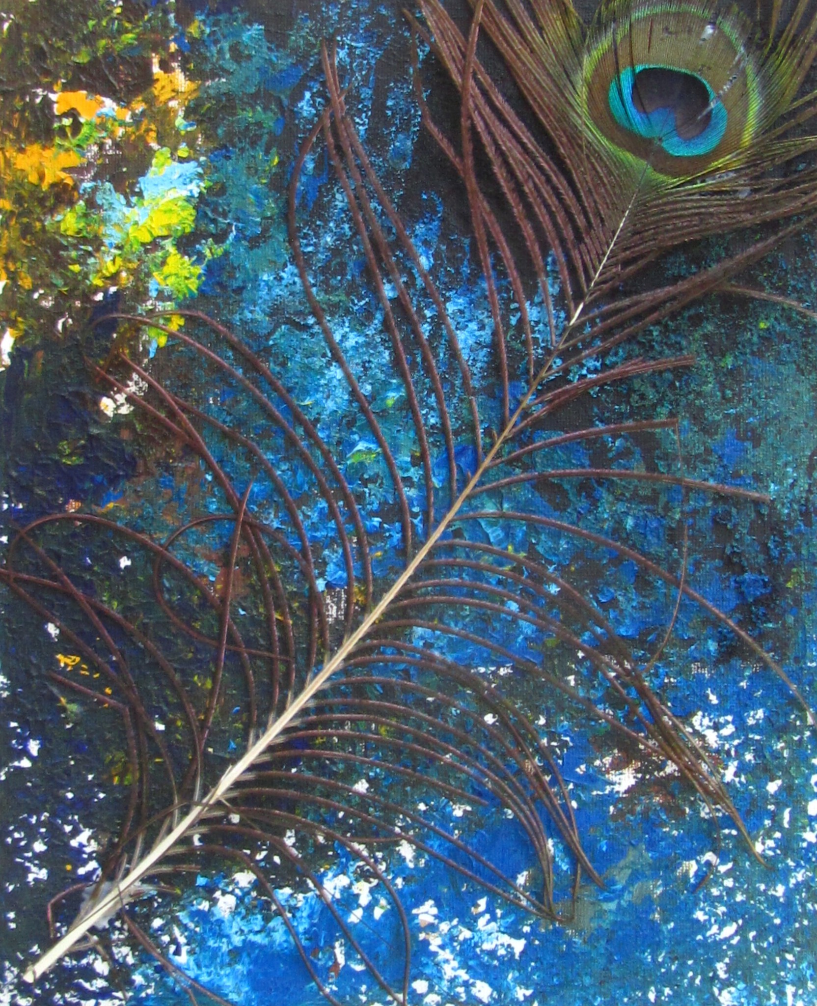 Een gevonden pauwenveer. Bij een pauw denk ik toch gauw aan trots! Niet een woord wat ik snel gebruik. Vaak voelt het meer als dankbaar-trots! Voor-op mijn kinderen, mijn kleinkinderen en stiekem zeker ook op alle werken op deze site.