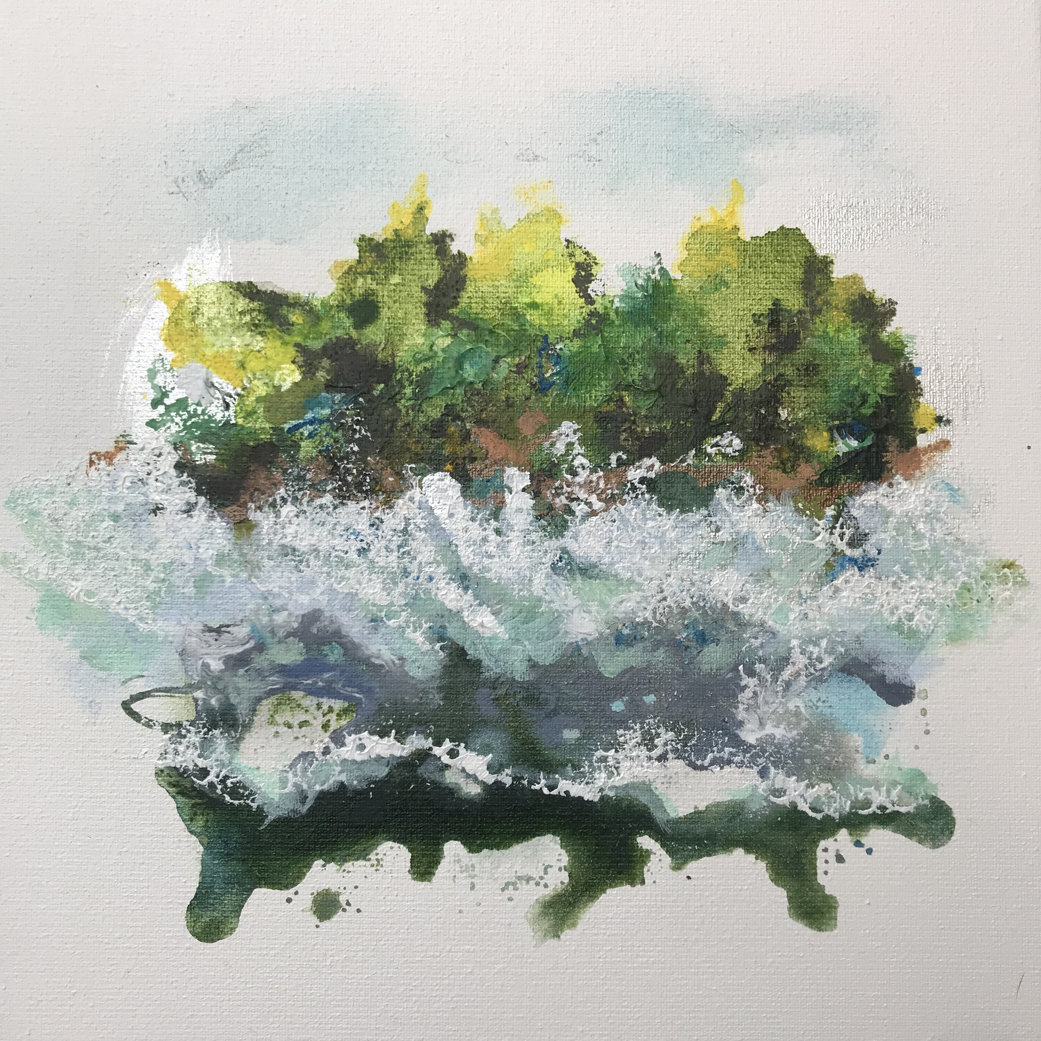 Schilderij Zee Abstract Landschap Blauw Acryl Groen Water Wind