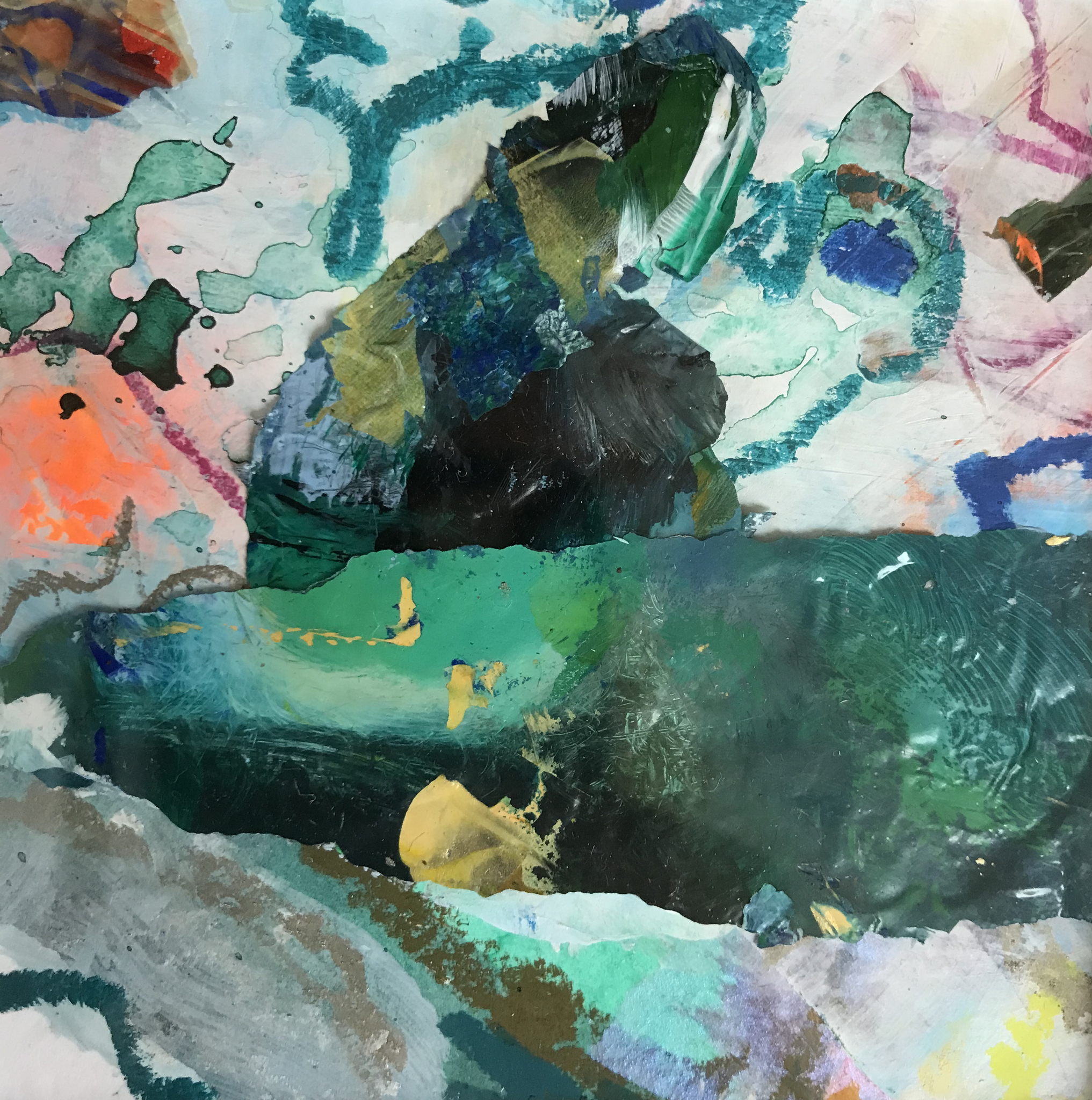 Abstract Acryl Groen Klein Papier Collage Mixedmedia