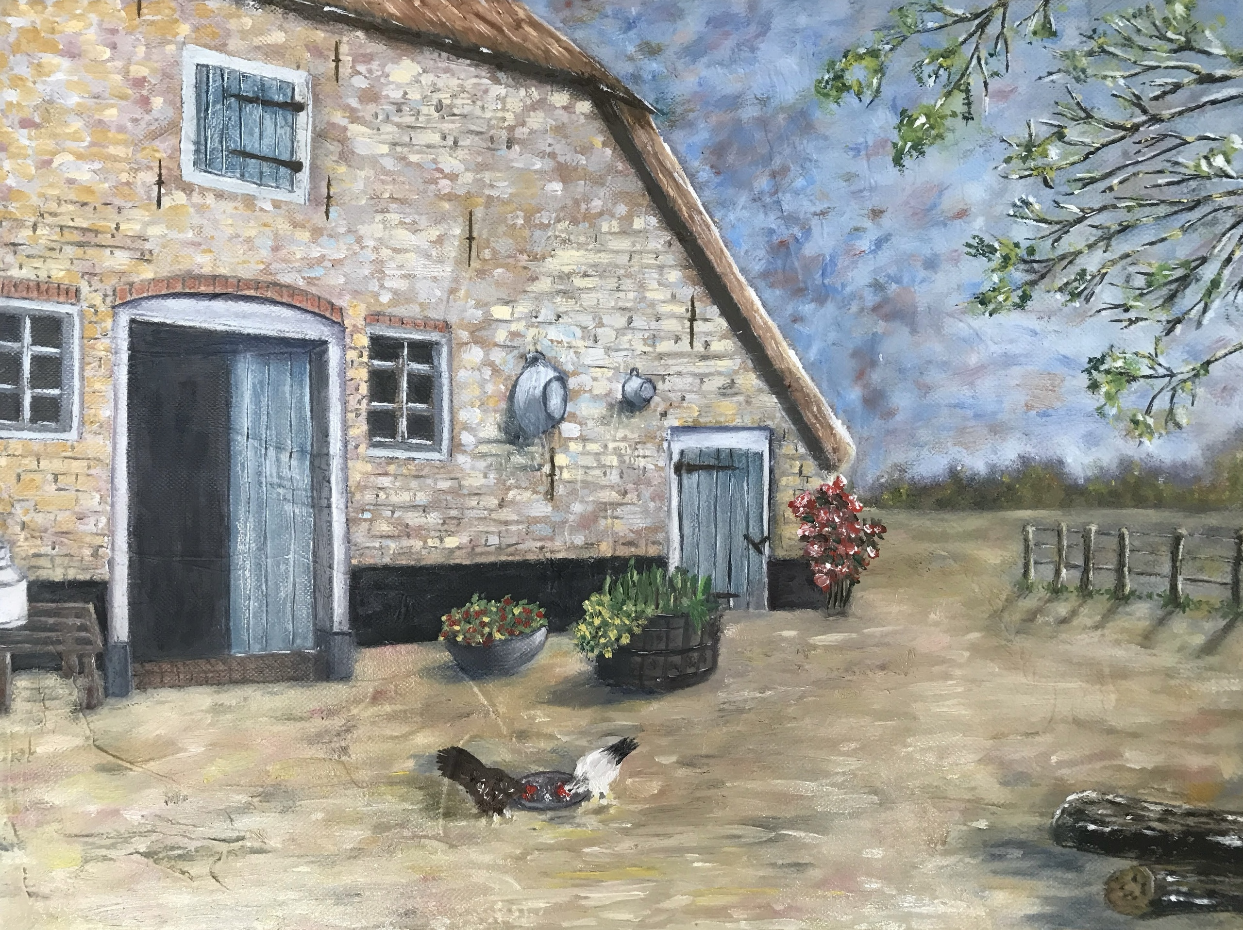 Oude boerderij in Lexmond. Op basis van eigen schetsen, uitgewerkt in mijn atelier.