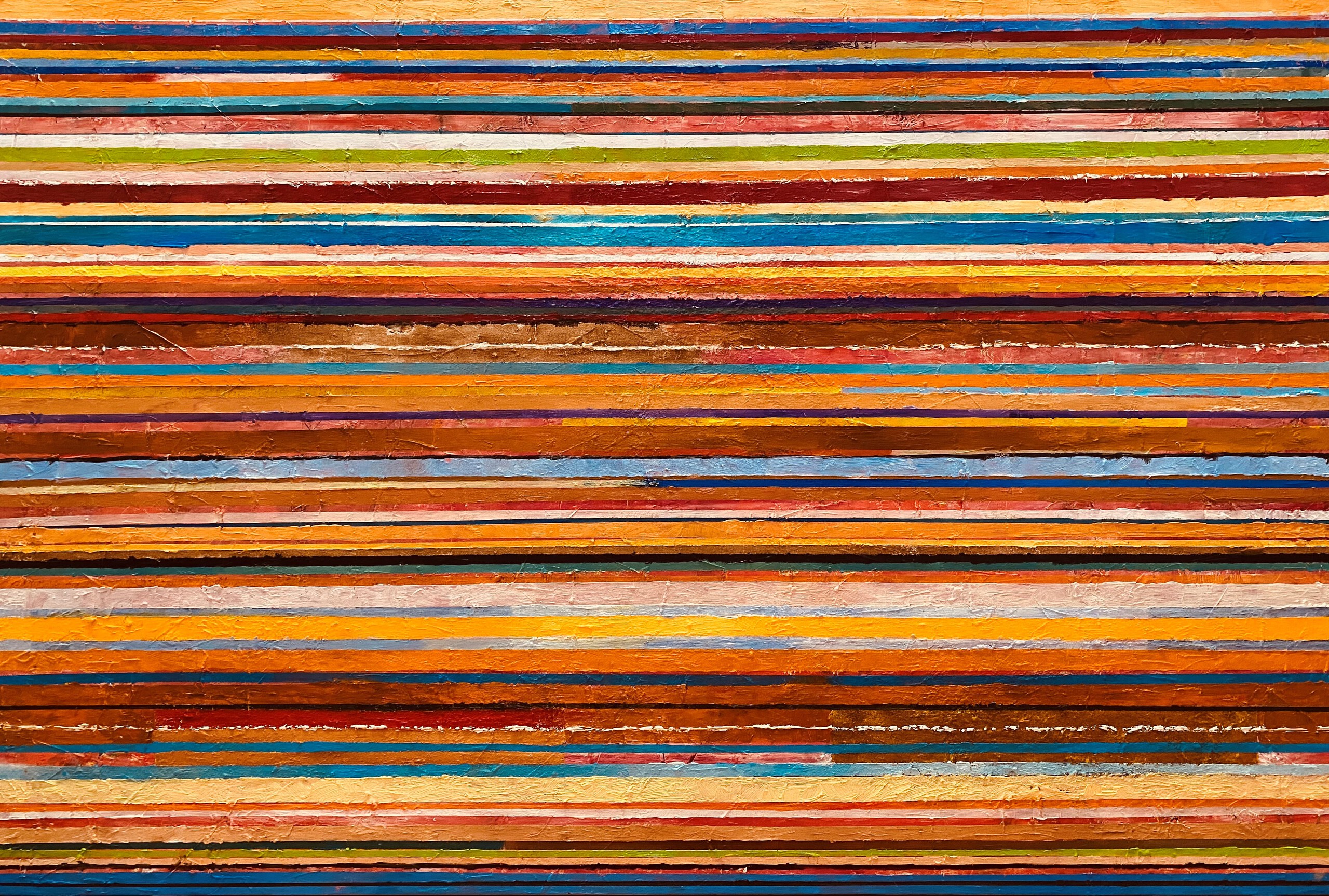 Abstract Modern Oranje Bruin Kleurrijk Olieverf Groot Lijn Veelkleurig Streep Horizontaal Extra