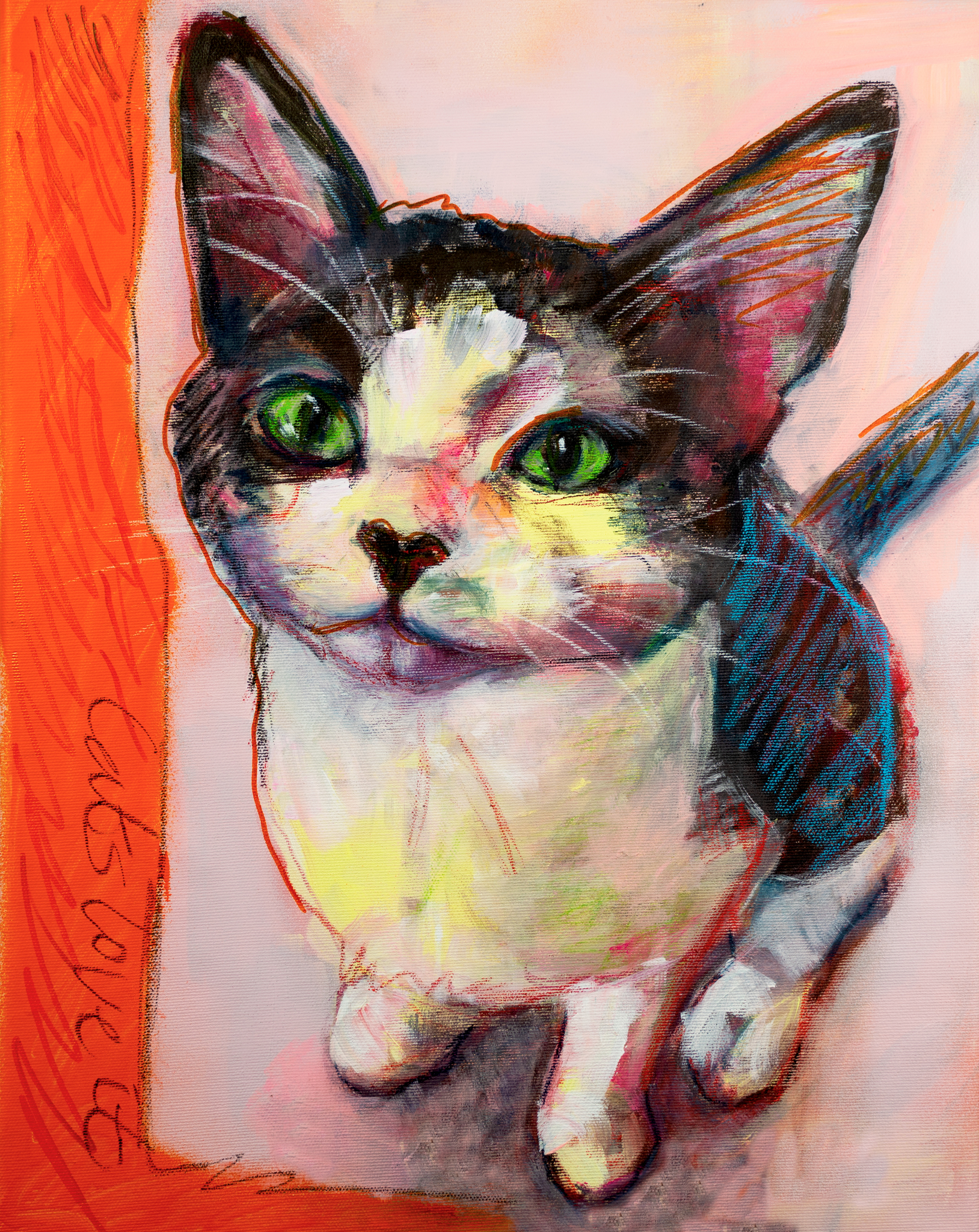 Schilderij Acryl Klein Krijt Dier Kat Kunst Poes Huisdier Kitten Zwartwit Cypers Spuitverf