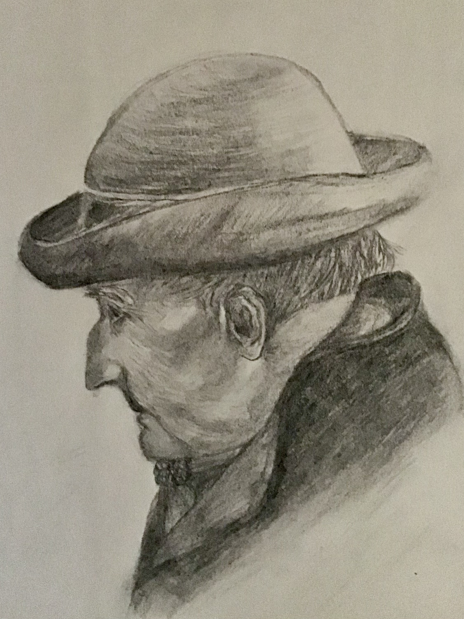 Man in Zeeuwse klederdracht, houtskool en grafiet.