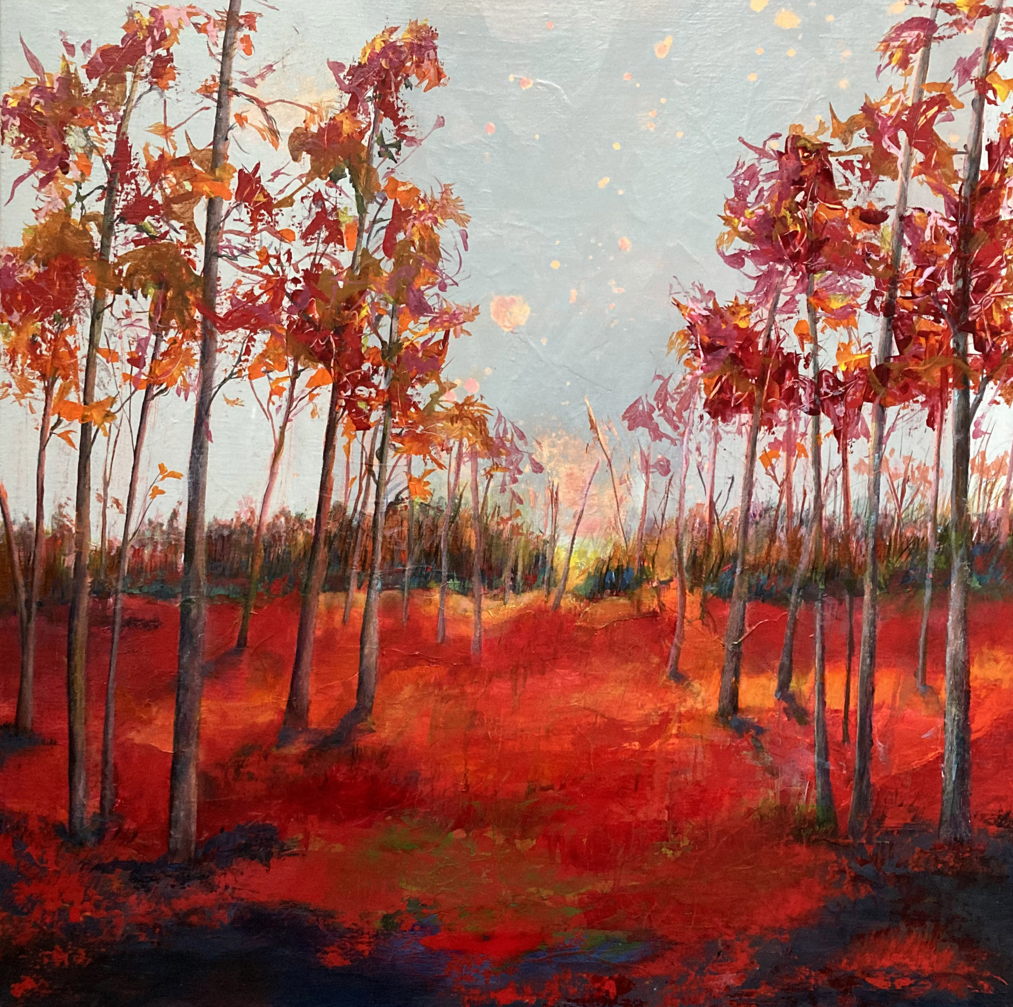 Abstract Rood Landschap Kleurrijk Geabstraheerd Bomen Herfst