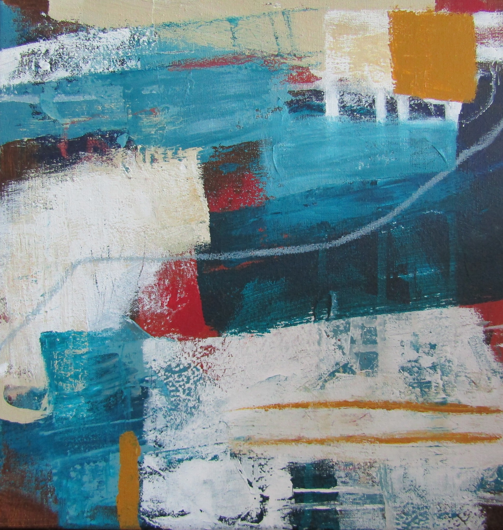 Abstract Acryl Expressief Klein Mixed Media Kleuren Werk Lyrisch Heldere Expresief Landschappelijk Poetisch Blauwgeel