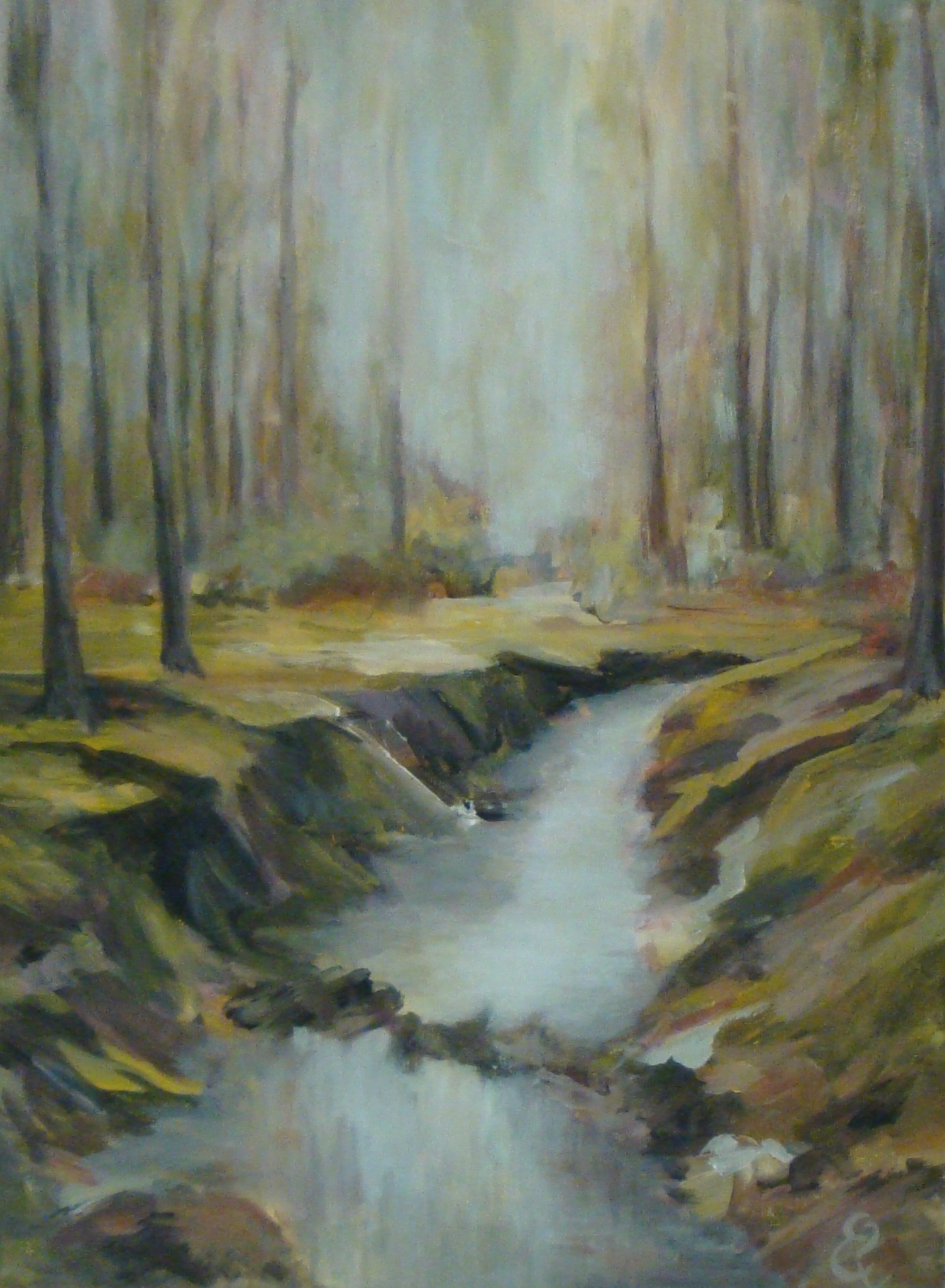Wit Rood Zwart Acryl Oker Realistisch Natuur Slootje