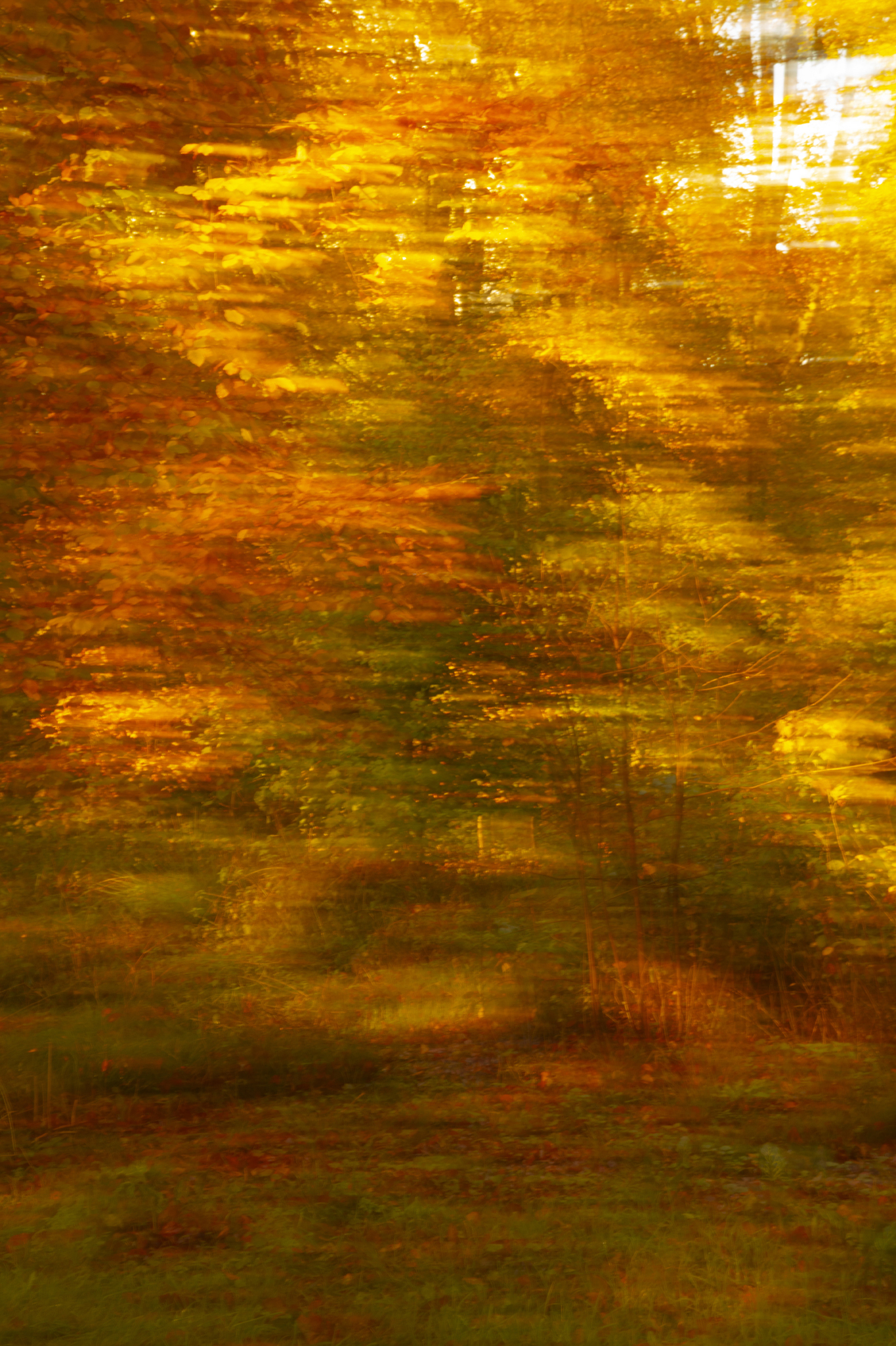 Gebruik gemaakt van ICM (Intentional Camera Movement) waarbij je de camera wat heen en weer beweegt om bijvoorbeeld een impressionistische sfeer te krijgen. Herfst in Amelisweerd, Utrecht Afgedrukt op alluminium met ophangplaat.