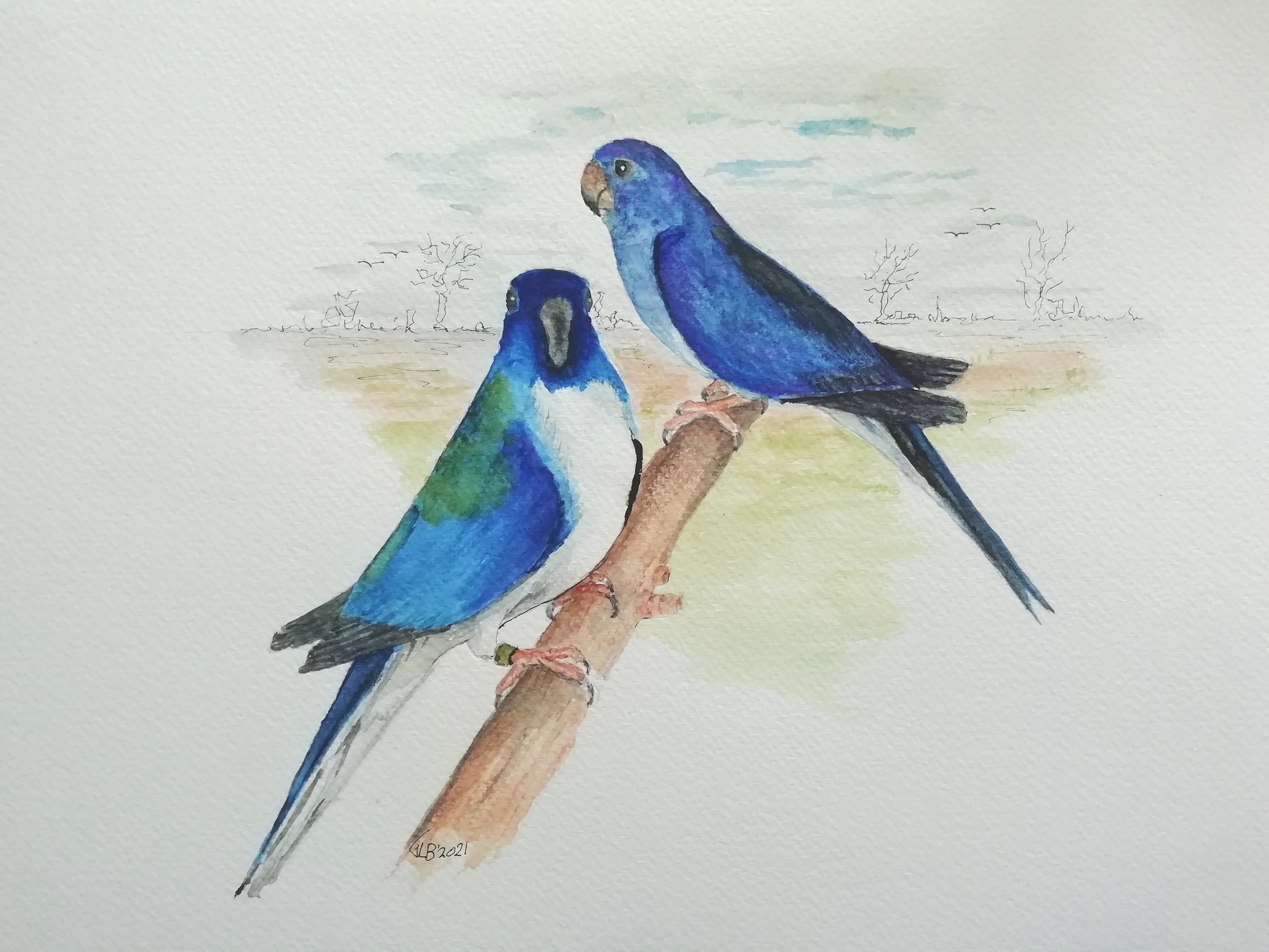 Een koppel Blauw (witbuik) Violet splendid parkieten