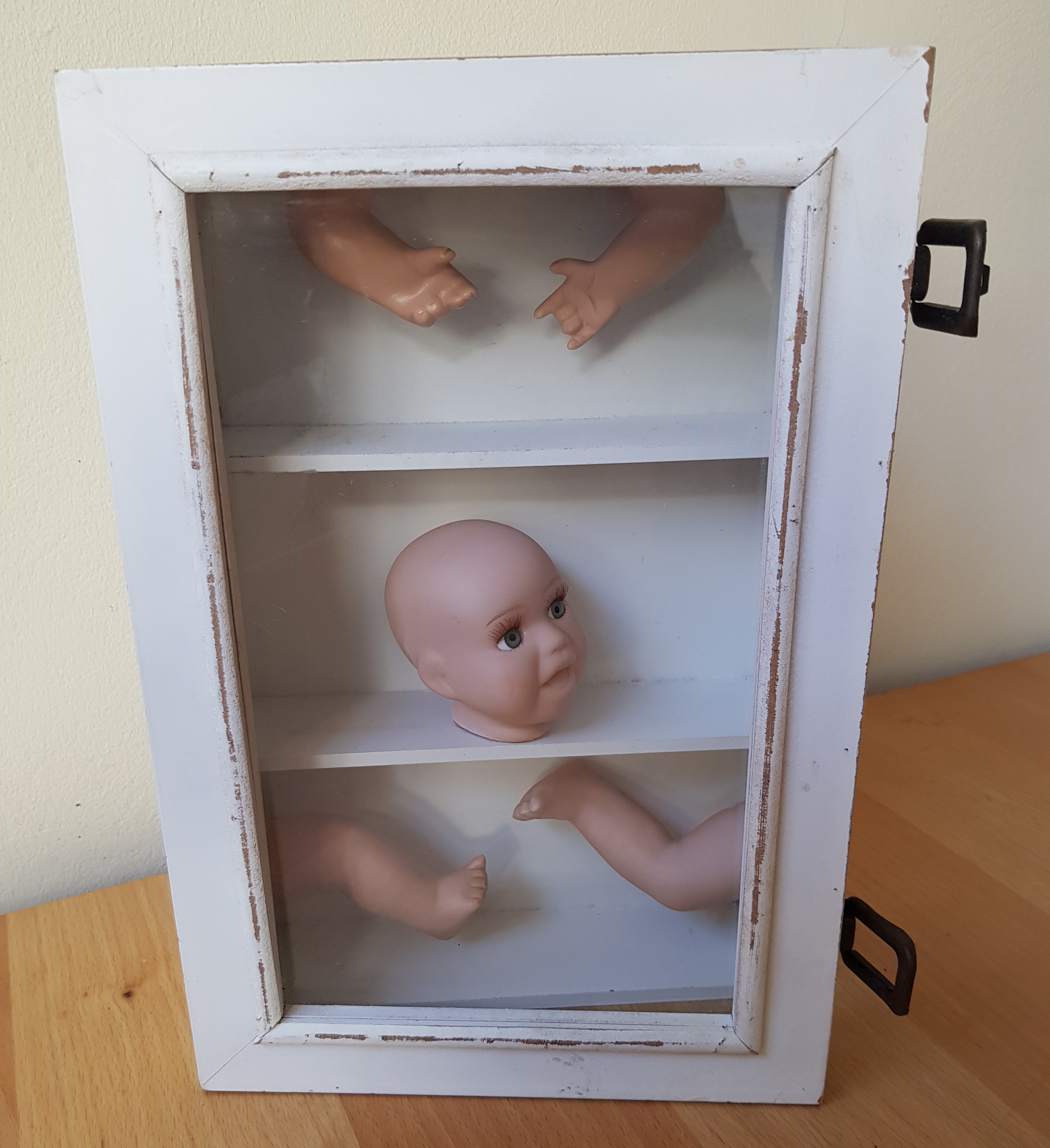 Een vitrinekastje, met daarin een poppetje dat niet weet hoe hard ze moet lopen.Ze heeft er zin in!
