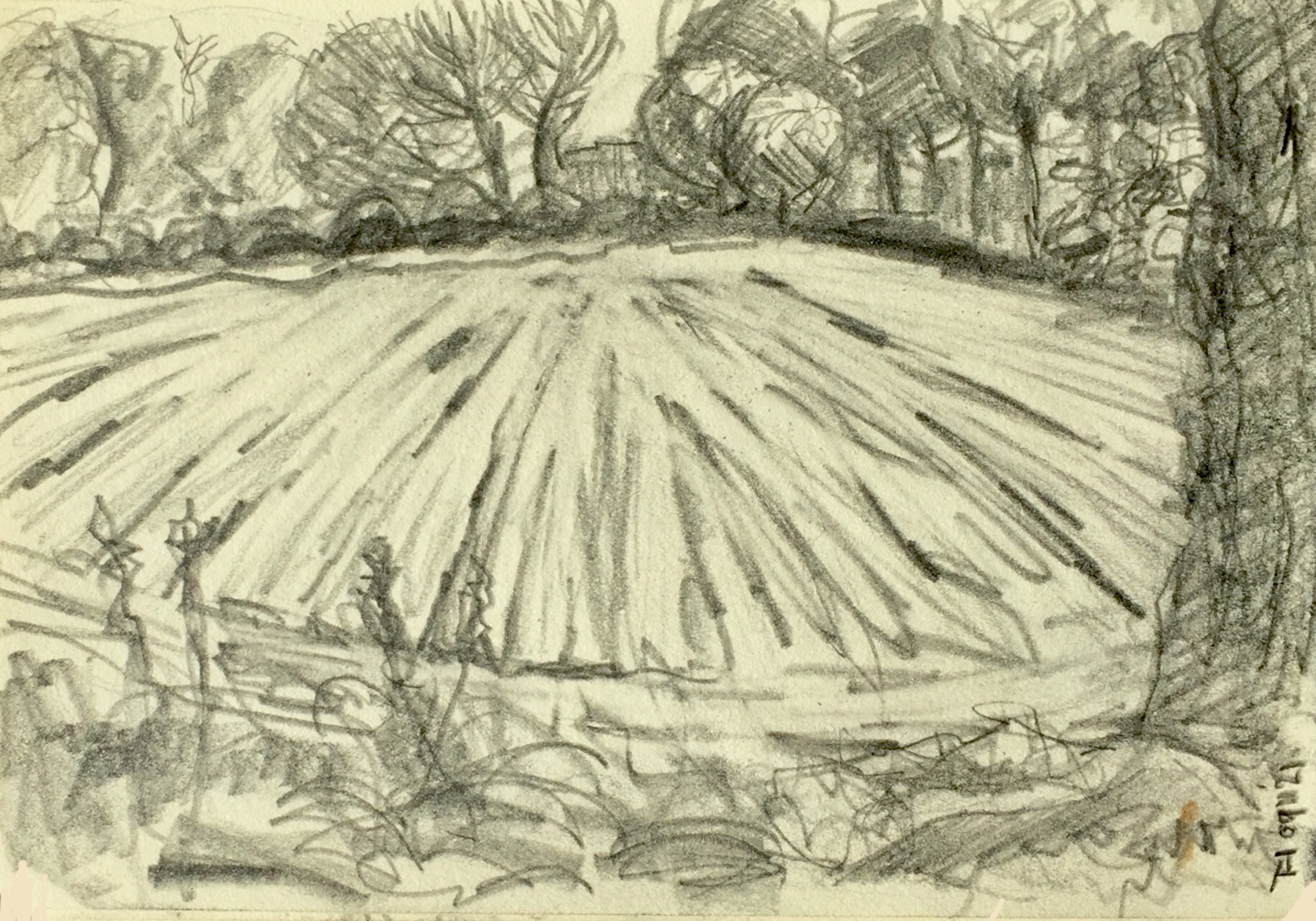 Dooibroek aan de rivier de Dommel tussen Vught en Sint-Michielsgestel Cretacolor monolith potlood op A6 papier.