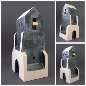 Ik ben architect (1947) en kom uit Haarlem. Na mijn pensionering ben ik keramiek gaan maken. Ik maak (naast geometrische vormen, schalen en vazen) veel zelfontworpen gebouwtjes.