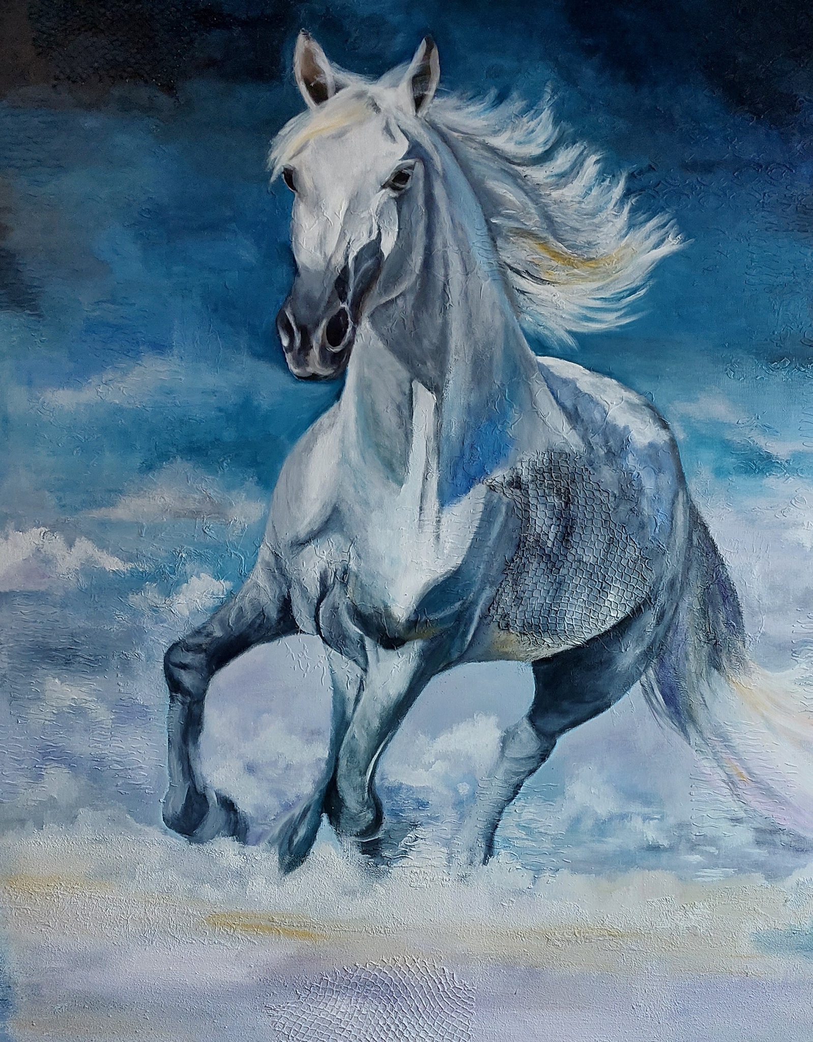 Dit paard heb ik voor mijn dochter geschilderd. Altijd een paardenmeisje geweest van jongs (4) af aan. Het doek was van haar en is nu weer bij haar terug. Dit werk is ook als art print te koop