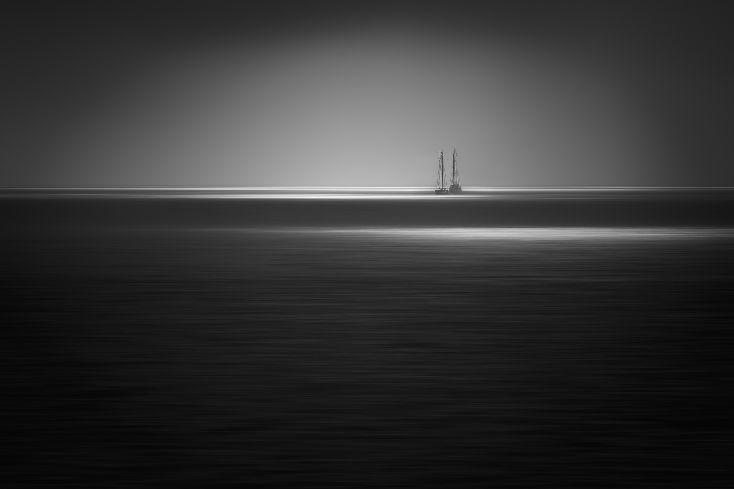 Zeezicht Zeilen Zeilboot Sereen Kalm Waddenzee Monochroom Zwart Wit Low Key