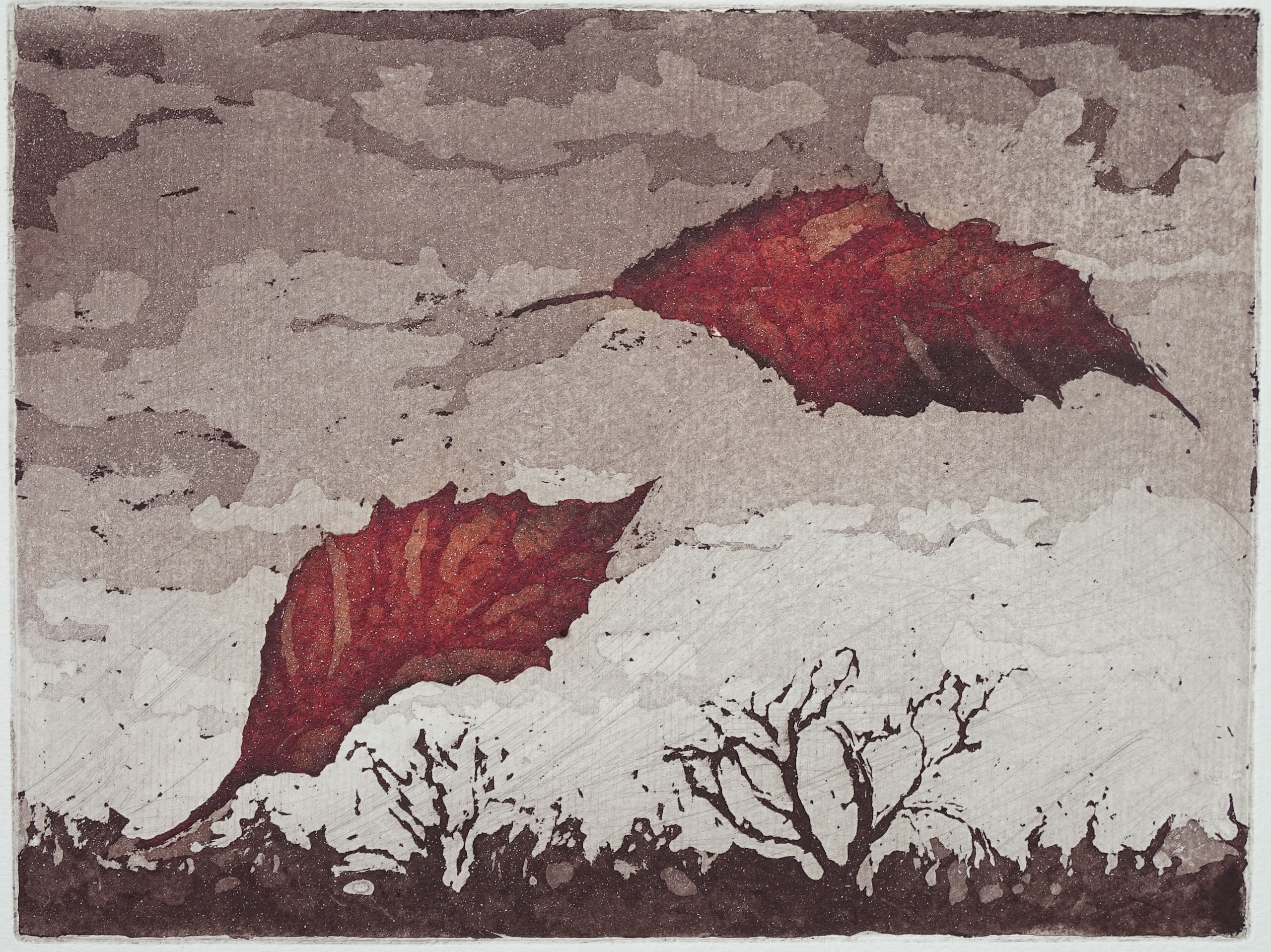 de laatste blaadjes vliegen rond, Soms geheel ,soms al deels kapot gegaan. Dit werk geeft de vergankelijkheid van het leven weer. de letste blajer vlege rondj, soms nog gans, soms al veur ein deil weg. ut werk laot ôs de vergankelikheid van ut laeve zeen .