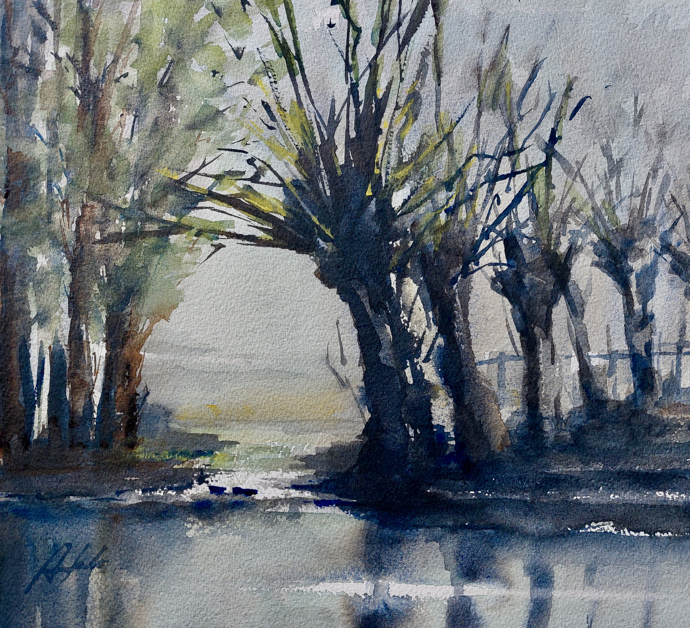 Aquarel Waterverf Nieuwkoop Knotwilgen Kouwenhoven Aad