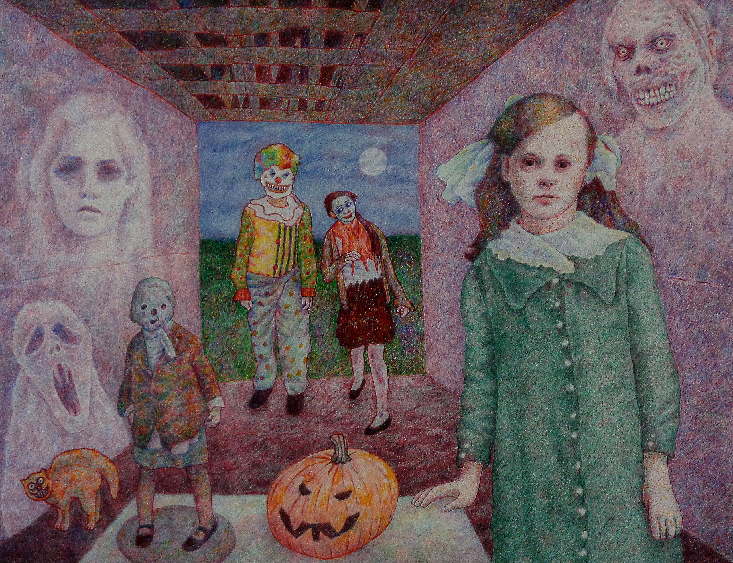 Werkt voornamelijk met Acrylverf, potlood en inkt. Is autodidakt.