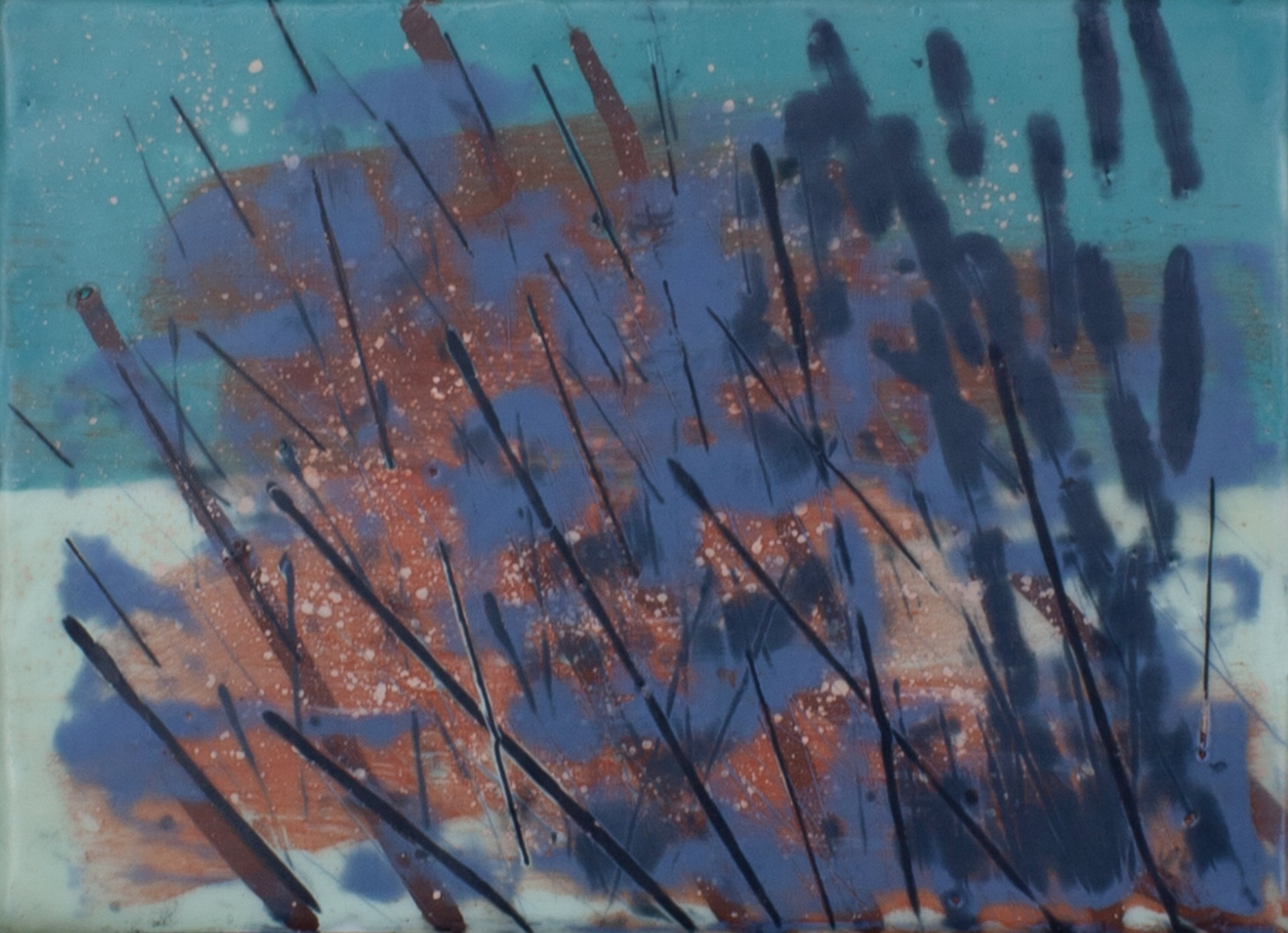 Markmaking Tekening Teken Lijn Stilering Warm-koud Zeegroen Rood Natuur Landschap Encaustiek Encaustic Plant
