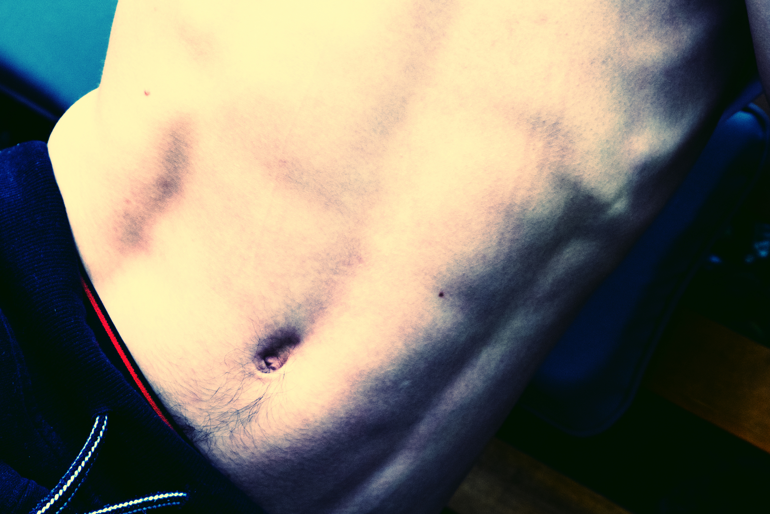 De darmen vormen het tweede brein, denken en voelen spelen zich daar af, zo ontdekte de wetenschap. Geen wonder dat we last van onze buik krijgen als we zenuwachtig zijn. En dat 'onderbuikgevoel', gut feeling.... Vierde foto in serie van vier bij elkaar horende foto's. De buik mag er zijn, in al zijn verschijningsvormen. Hoera voor de buik, al is het ook wat ongemakkelijk om ze zo groot te zien. Smaller sizes possible. Limited edition printed on pearl photopaper on dibond with 3 mm acryl and hanging system.